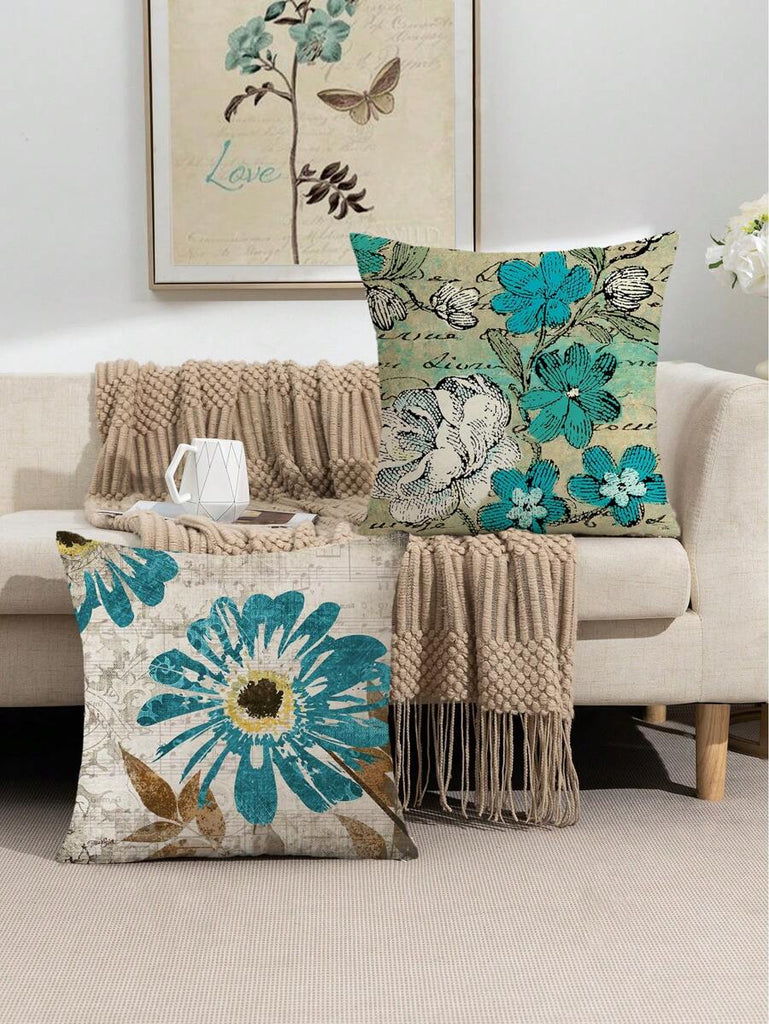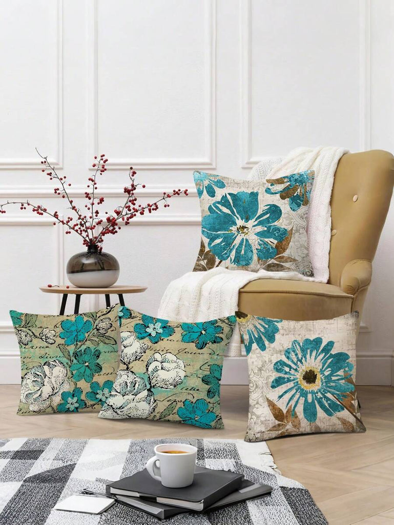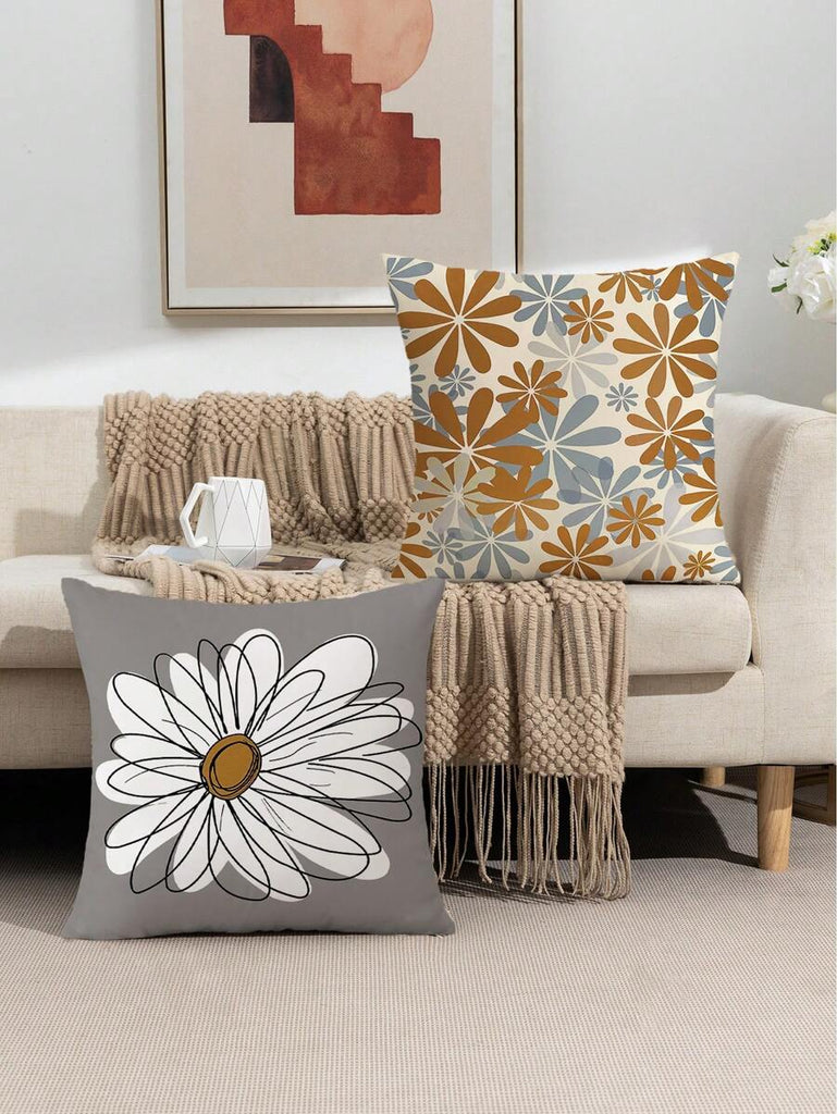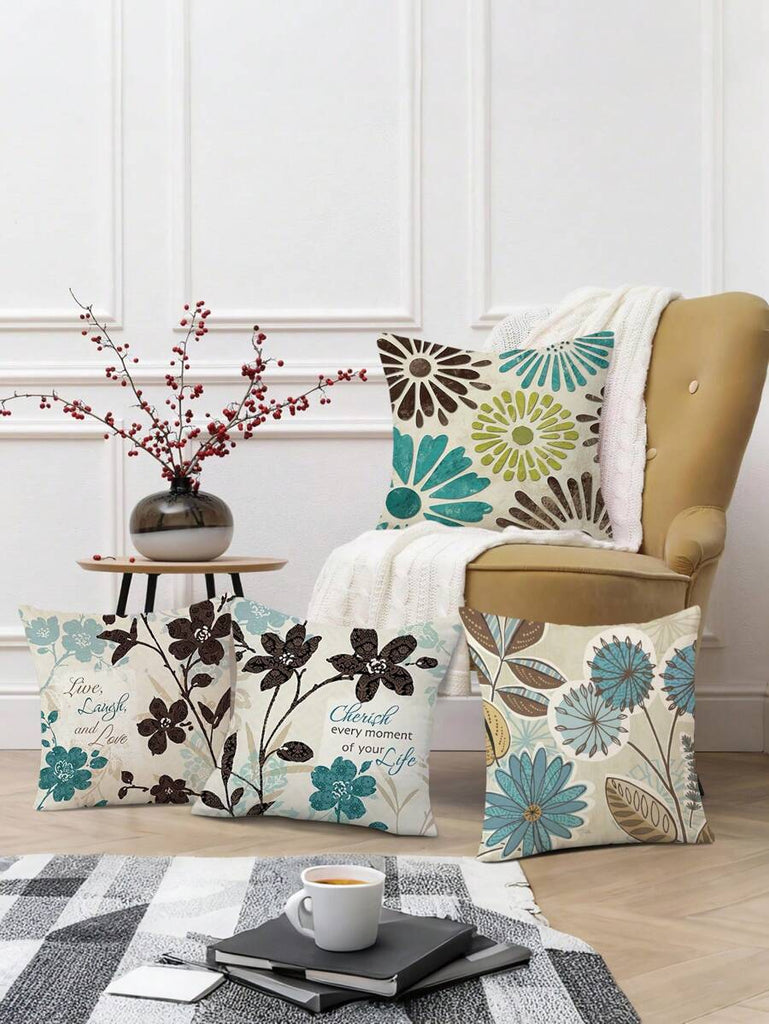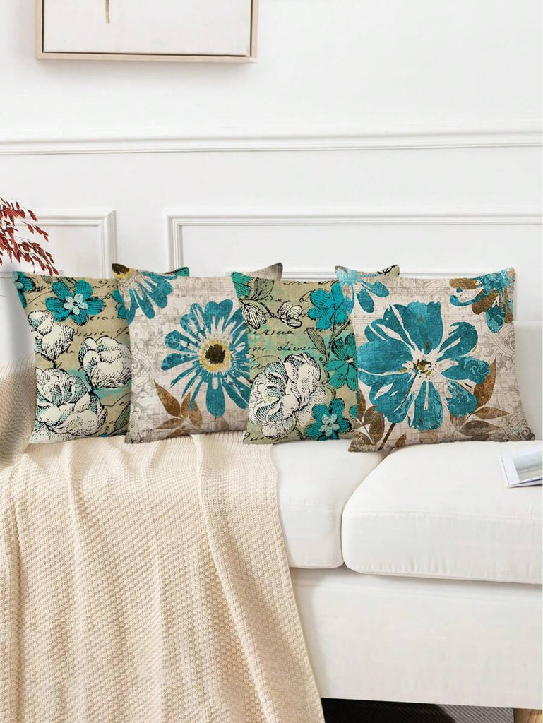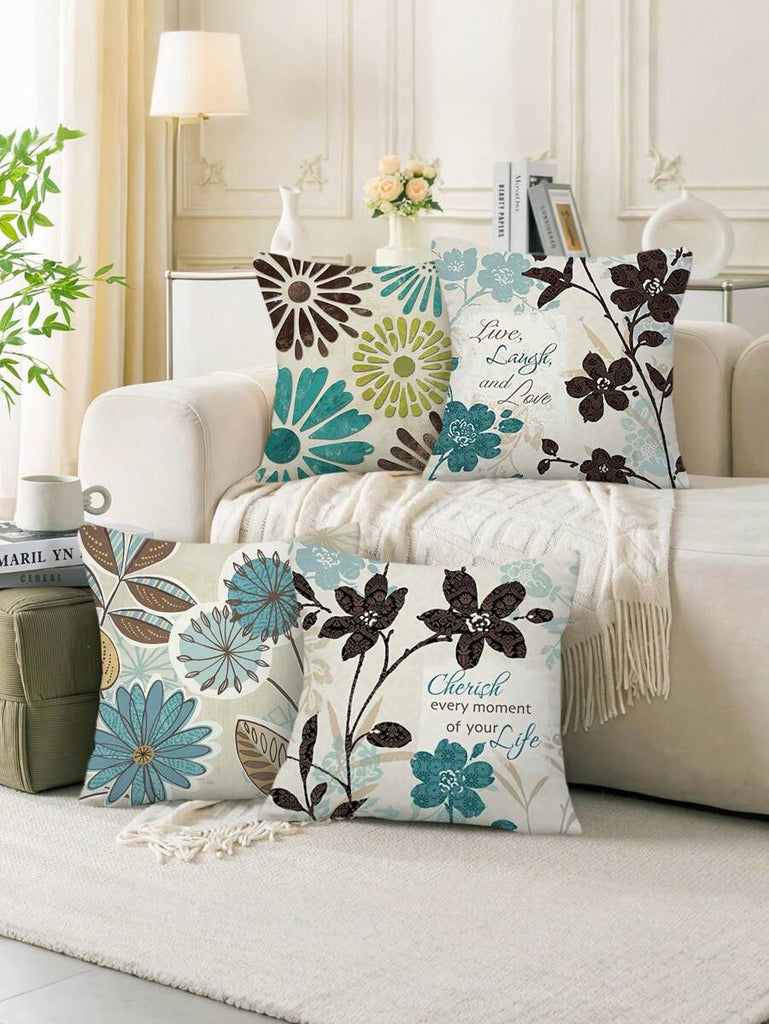 4pcs Geometric Floral Print Pillow Case, Soft Velvet Hidden Zipper Cushion Cover, Suitable For All Seasons, Without Pillow Insert, Gift For Home, Bedroom, Living Room