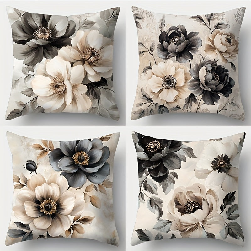 4pcs, romantic flower pattern soft pillowcases, 45.01 x 45.01 cm, comfortable matching, practical and beautiful, unique and exquisite design, machine washable, with zipper closure, suitable for sofa, car, bedroom decoration