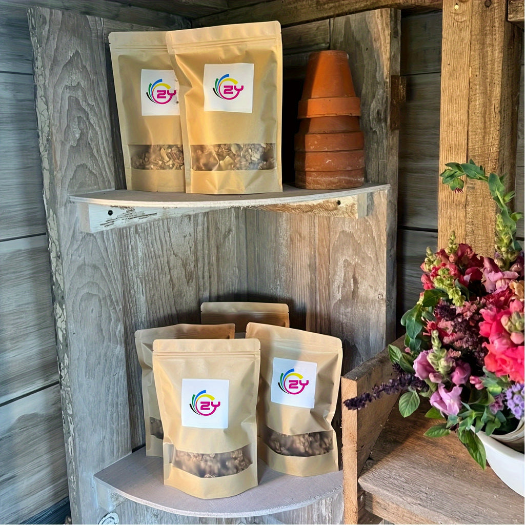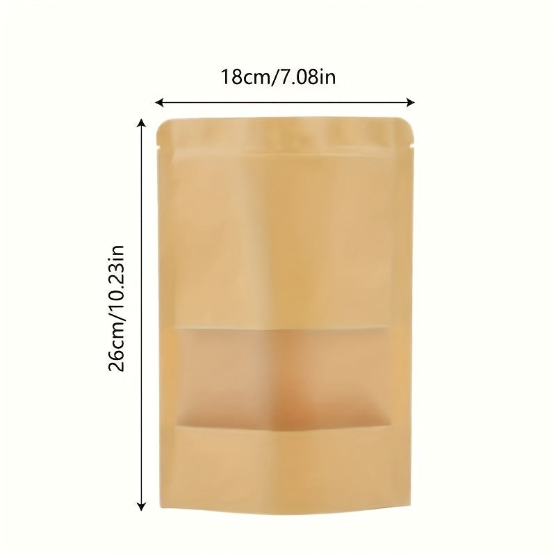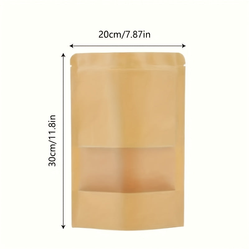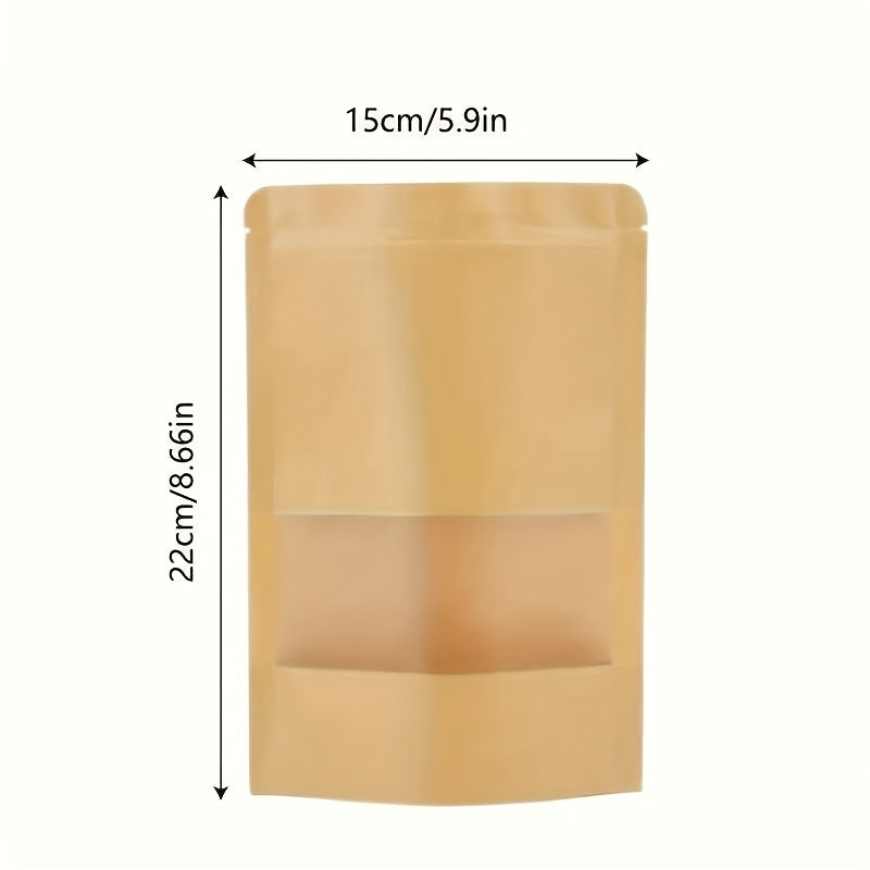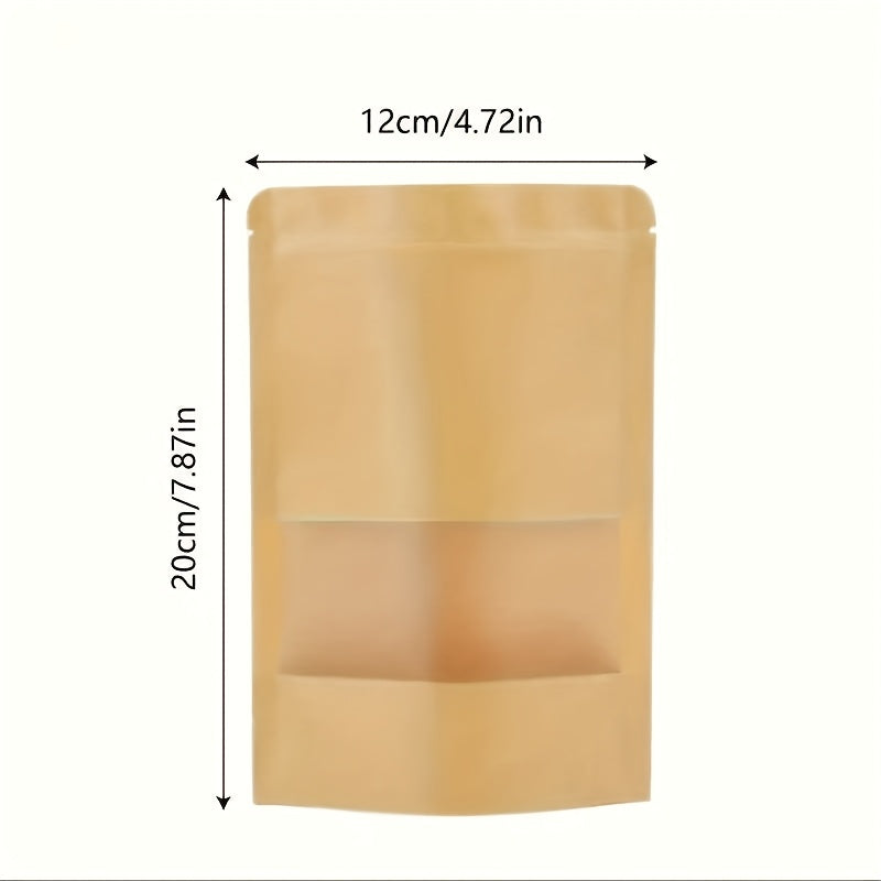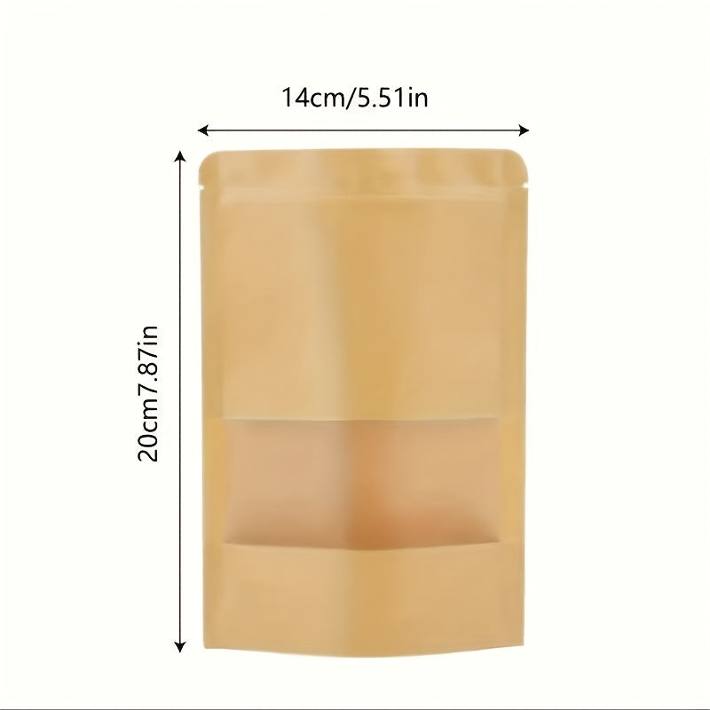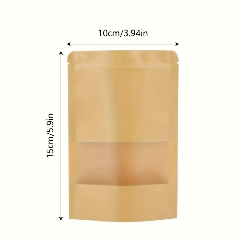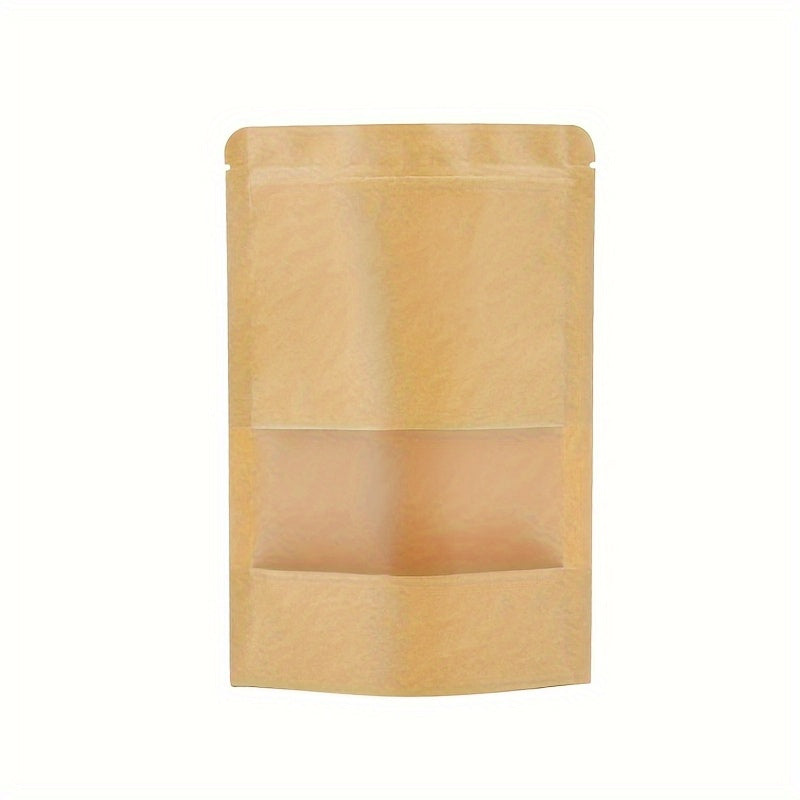 60pcs Reusable Sealable Zipper Kraft Paper Composite Material Standing Bags with Transparent Window, Suitable for Small Business Commercial Packaging, Jewelry Packaging, Gift Packaging