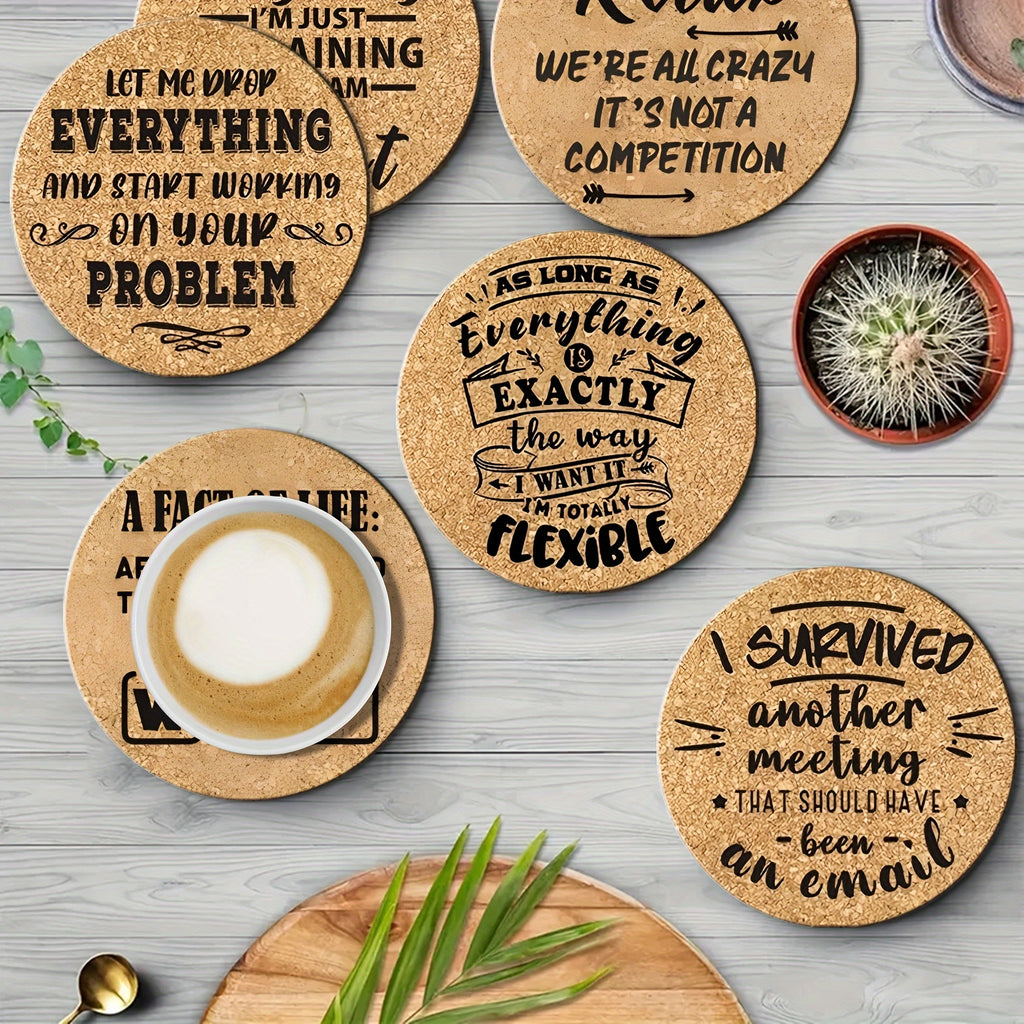 6pcs Wooden Coaster Set with Meaningful Letter Design - Heat-Resistant Coasters for Drinks, Coffee, Office, Kitchen, and Dining Table - Artistic Desk Protectors, Perfect as Birthday or Christmas Gifts