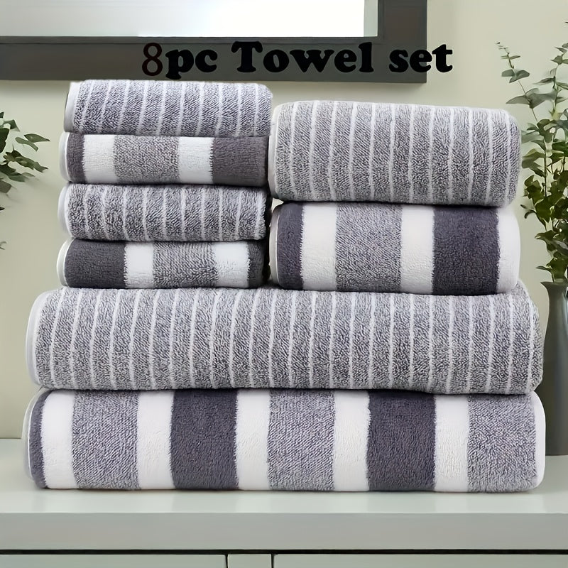 8pcs Coral Fleece Towel Set: 2 Bath Towels, 2 Bath Towels, and 4 Washcloths