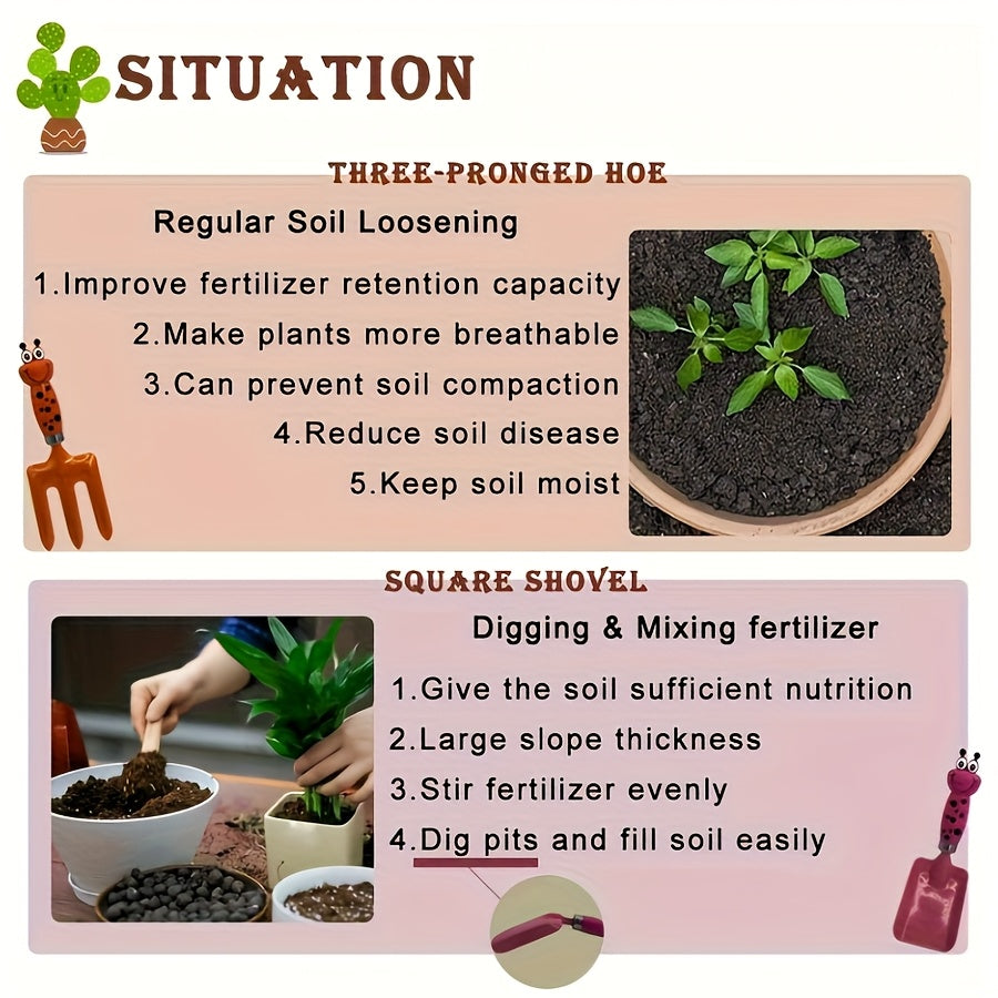 A complete set of 4pcs gardening tools, including outdoor shovels, metal hand shovels for flower POTS, and a set of vegetable planting tools. It is a good helper for trimming flowers in the courtyard