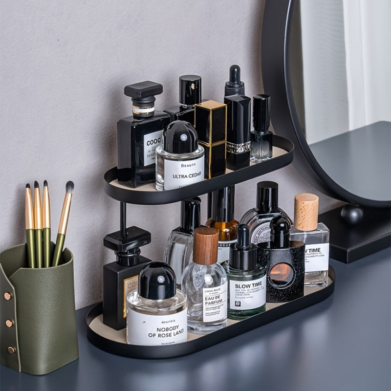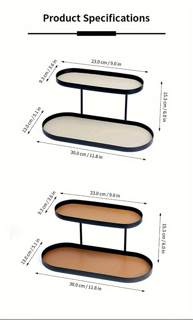 Elegant Black Metal Double-Tier Oval Storage Box with Faux Leather Pads - Ideal for Cosmetics, Jewelry, and Keys - Perfect for Bedroom, Bathroom, and Living Room Organization, Jewelry Towers