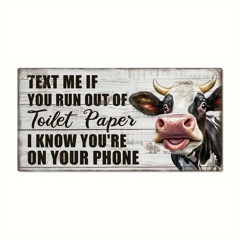 Funny Cow Pattern Wooden Bathroom Sign - 'Text Me If Your Toilet Paper Runs Out' - Perfect for Home Spa, Living Room, Parties & Garden Decor with Hanging Rope