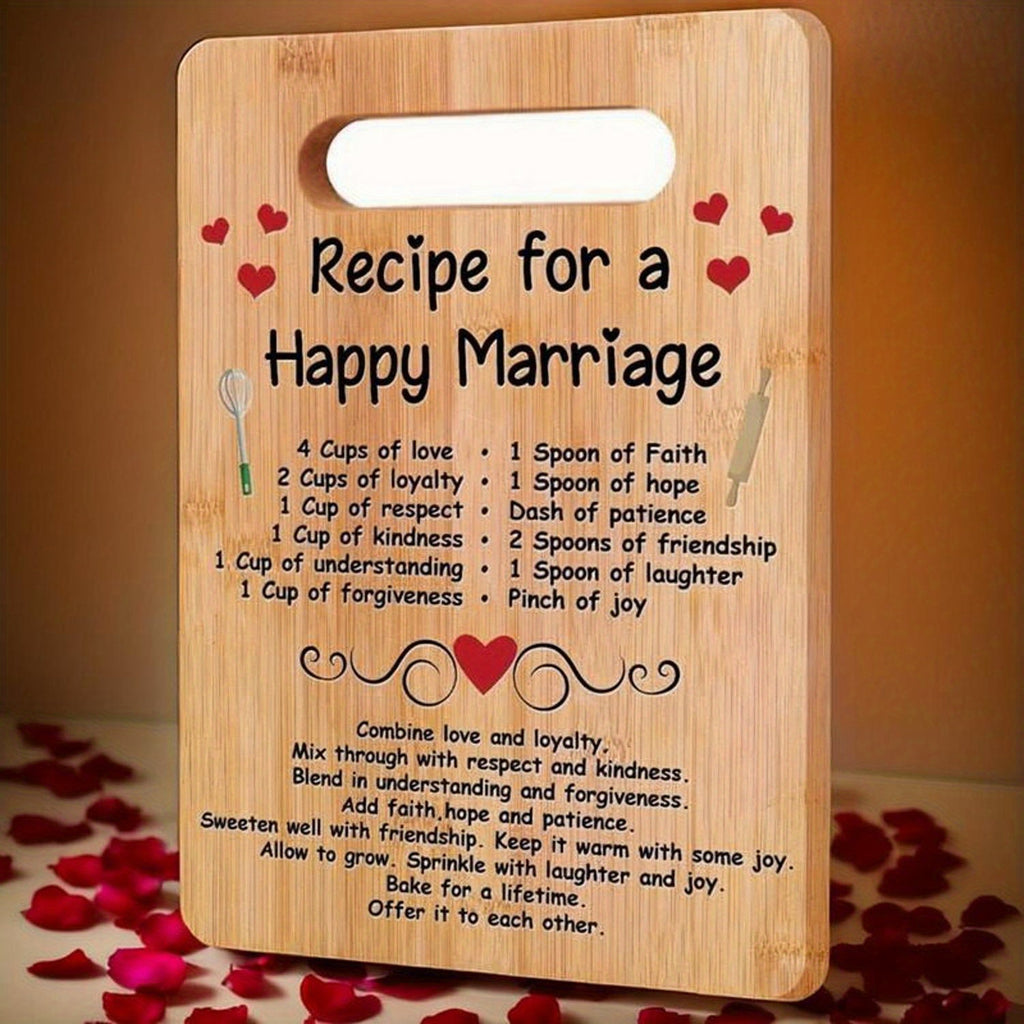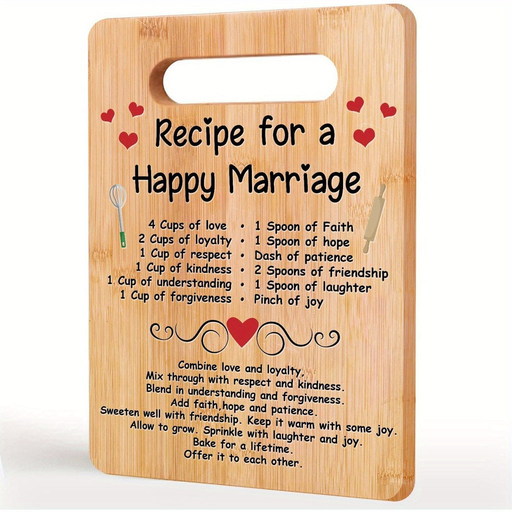 Happy Marriage Engraved Bamboo Cutting Board - Perfect Wedding & Bridal Shower Gift for Couples