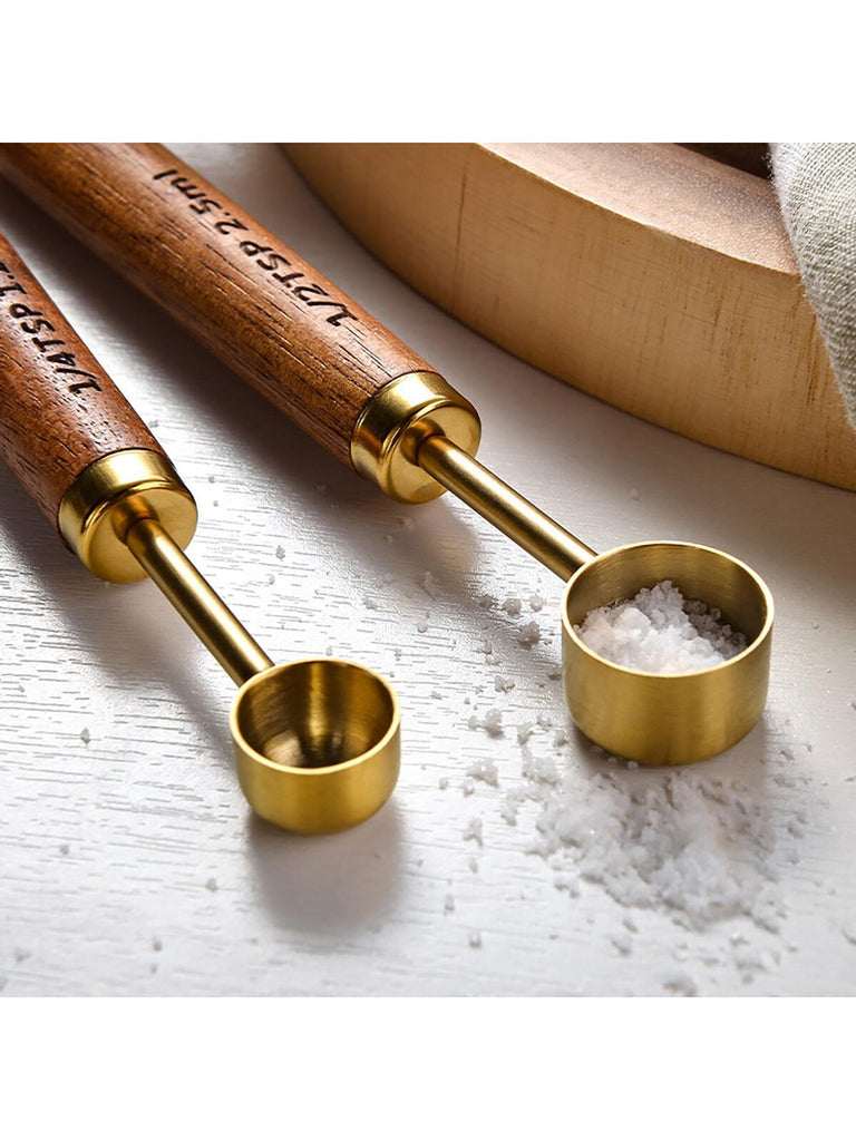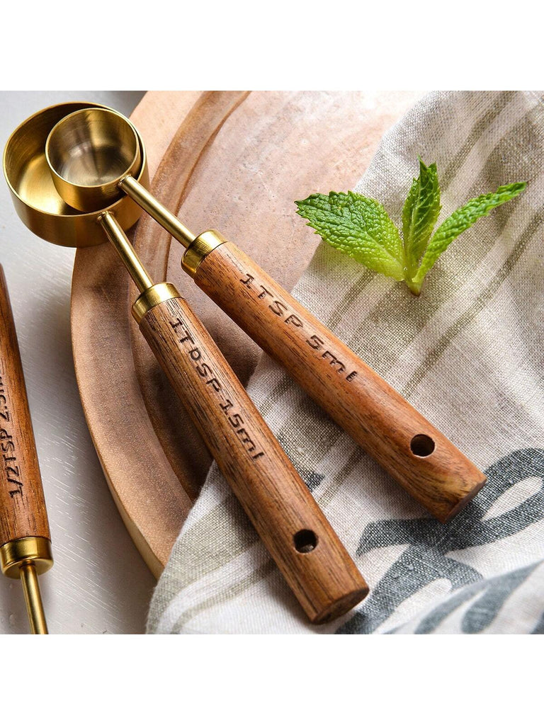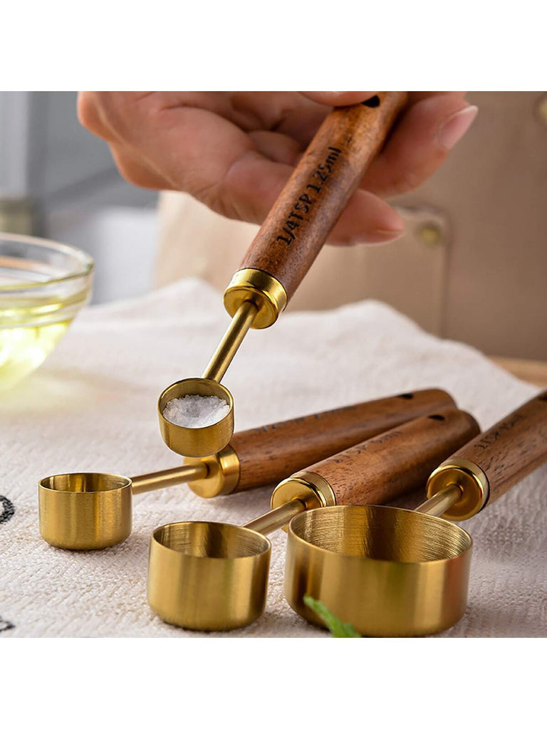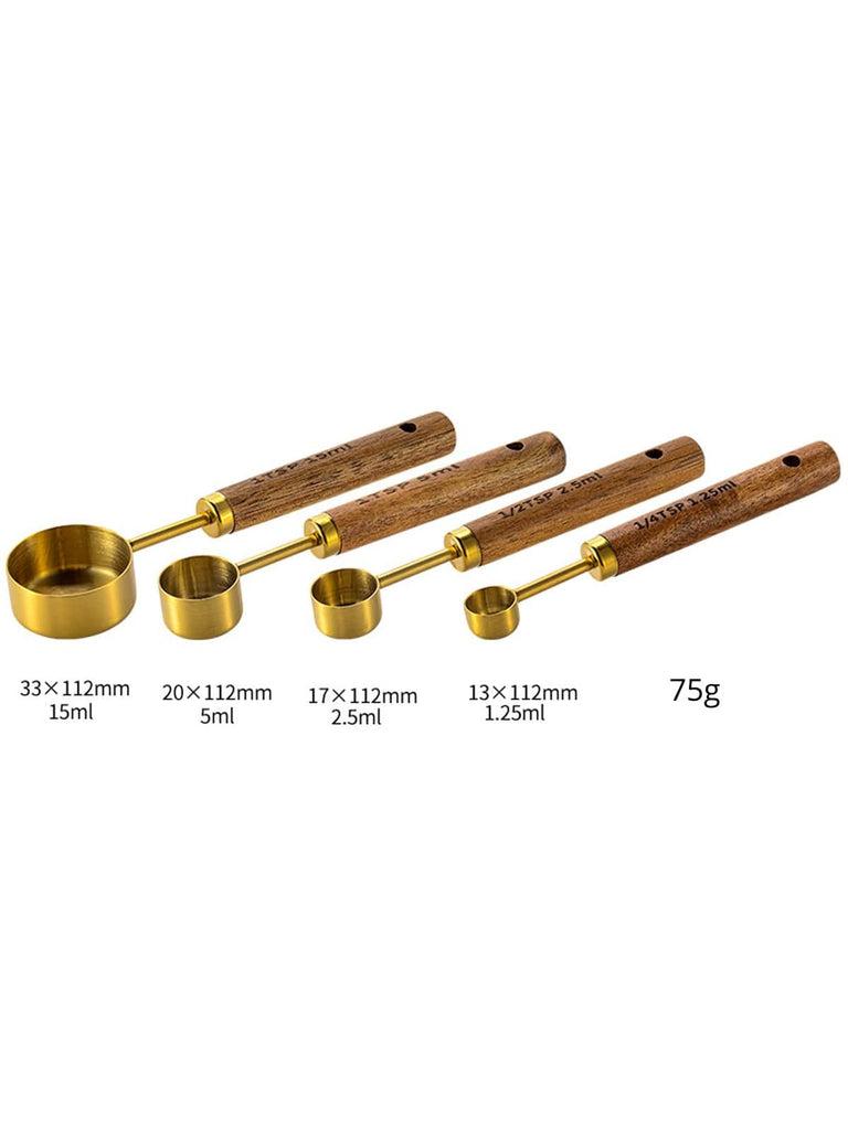 Jokipvy 4Pcs/Set Measuring Spoon Set Wooden Handle Stainless Steel Measuring Cups Spoons Baking Tools Coffee Bartending Scale Kitchen Accessories