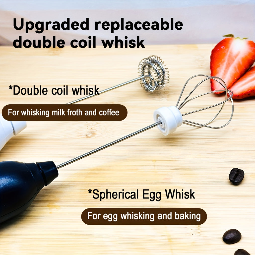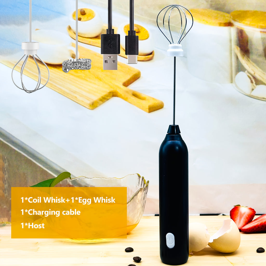 Milk Frother Rechargeable Handheld Electric Blender Coffee Frother Blender with 2 Stainless Steel Blenders 3 Speed Adjustable Frother Blender for Coffee, Matcha, LatteCappuccino, Hot Chocolatea