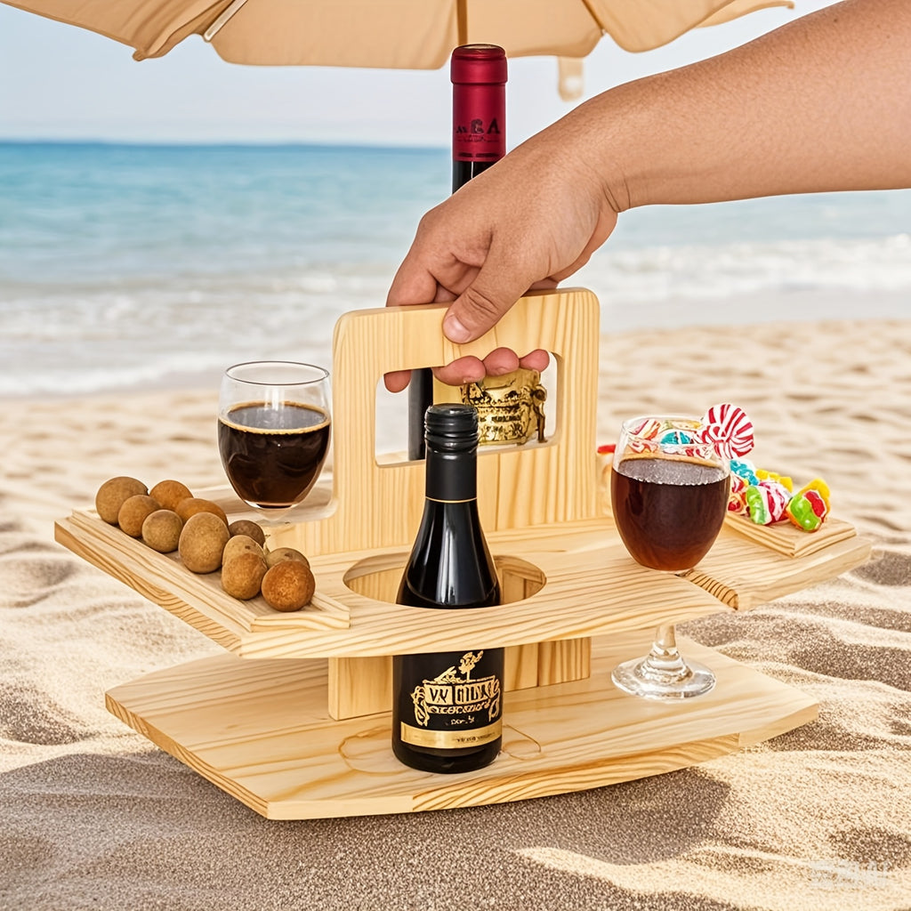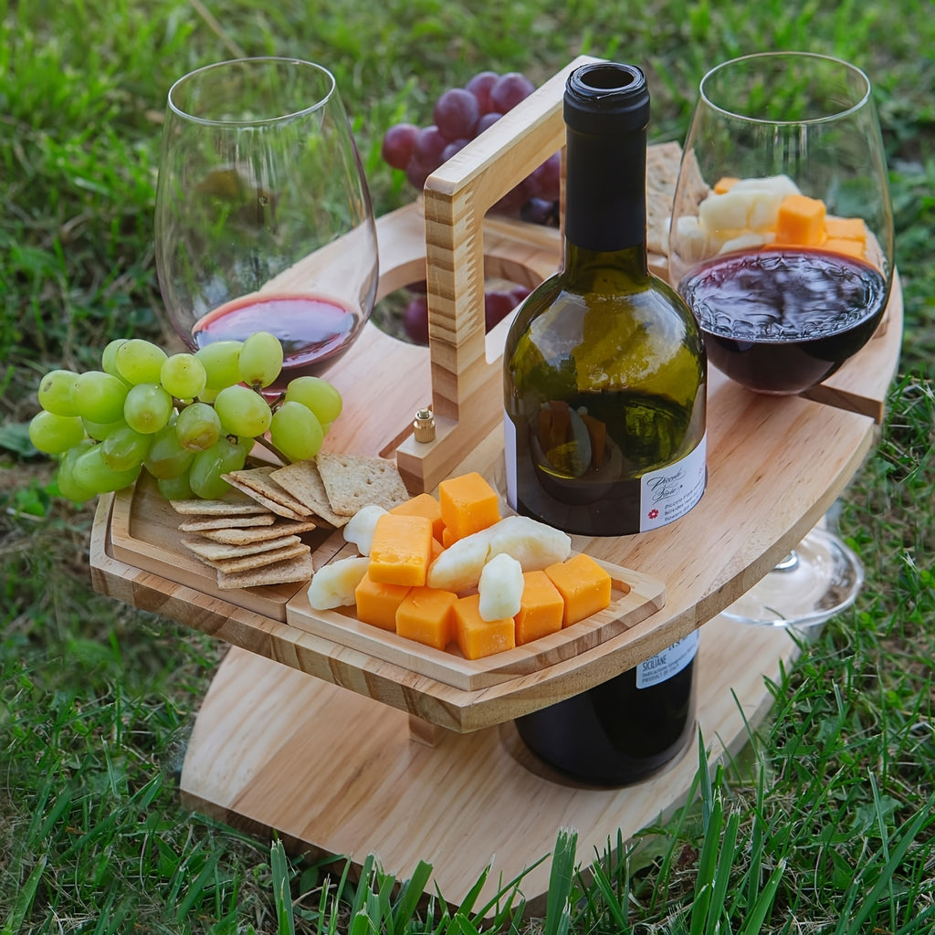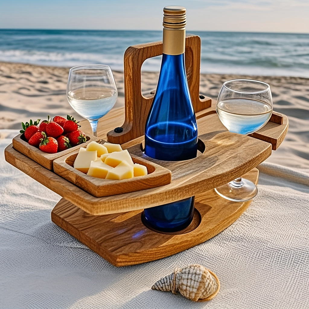 Portable Wooden Wine Table: Perfect for Outdoor Picnics, Beach, and Romantic Dinners - Ideal for Wine Lovers, Picnics, and Camping, Picnic Tra