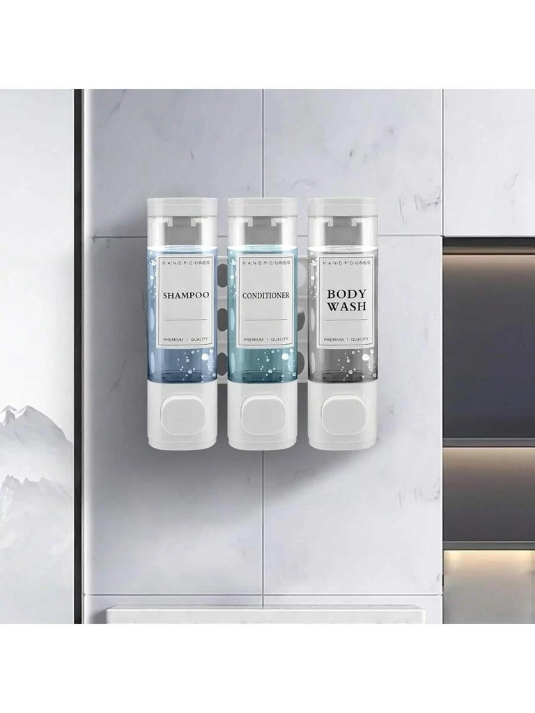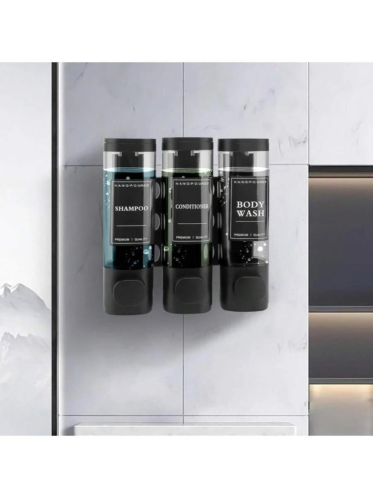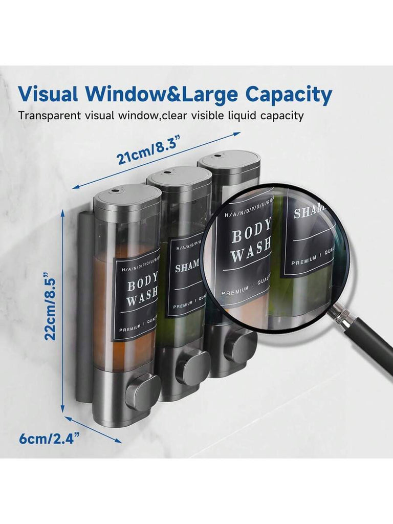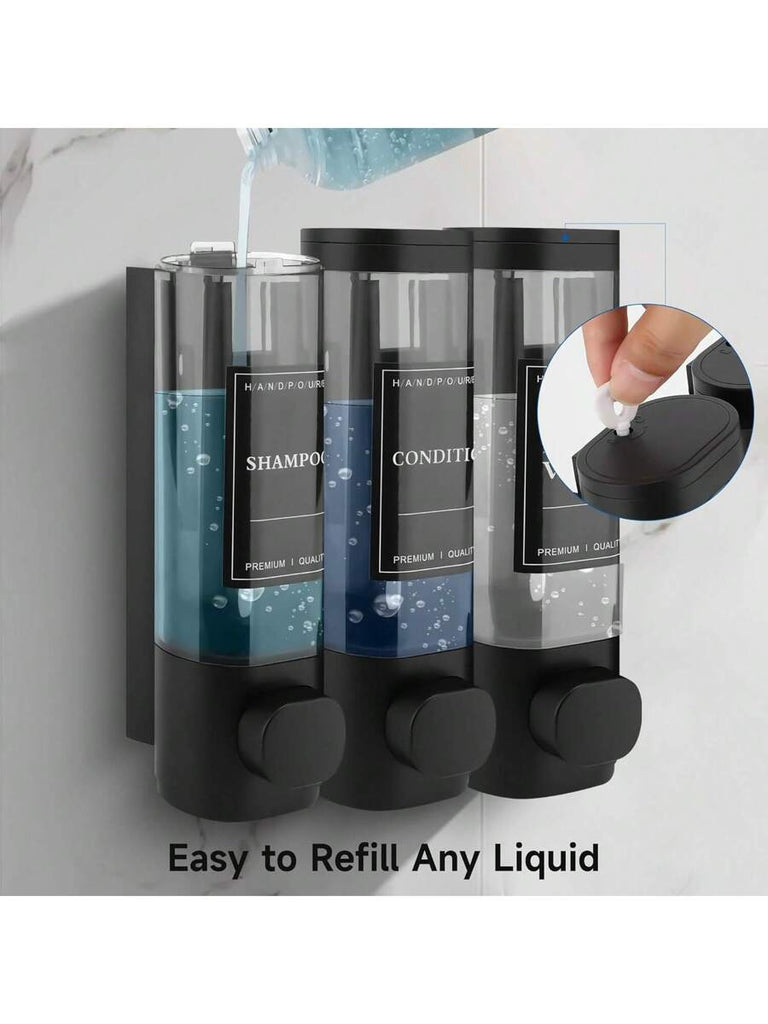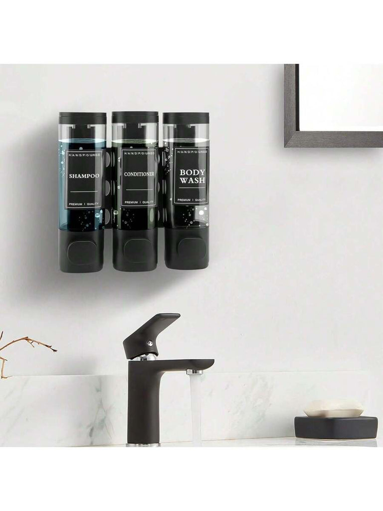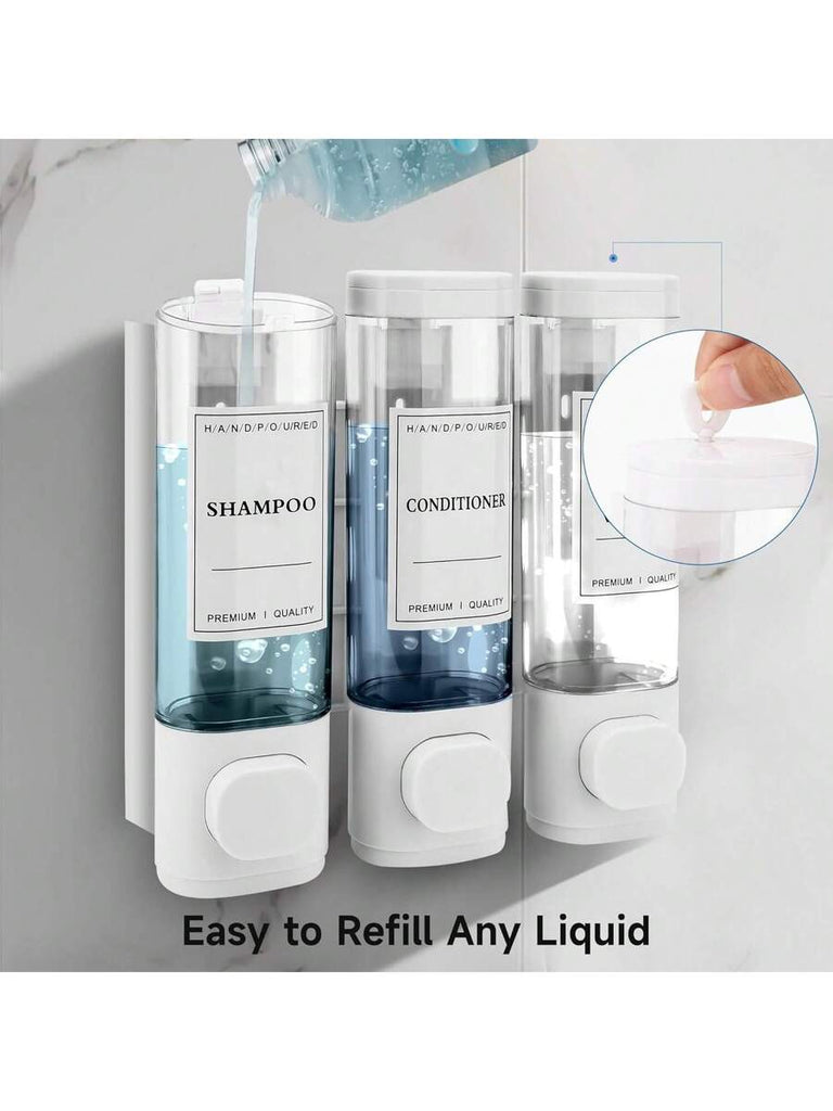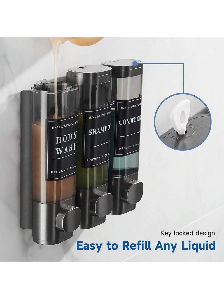 Soap Bathroom Shower, Indoor Liquid Soap, Lotion And Gel Dispenser, Wall Mounted No-Drill, Transparent Brown With Label Lock, Suitable For Bathroom, Shower, Kitchen, Black, Dark Gray, White, Two Bottles, Three Bottles, 300ml/Bottle Bathroom Decor Fall Dec