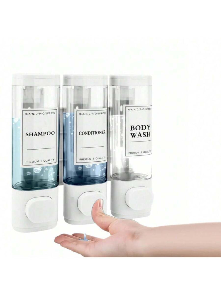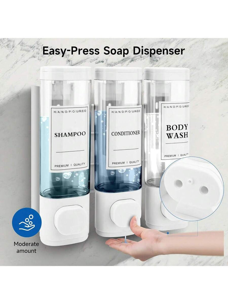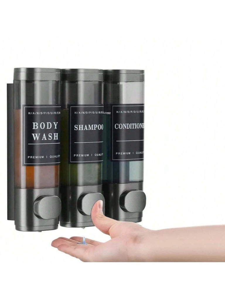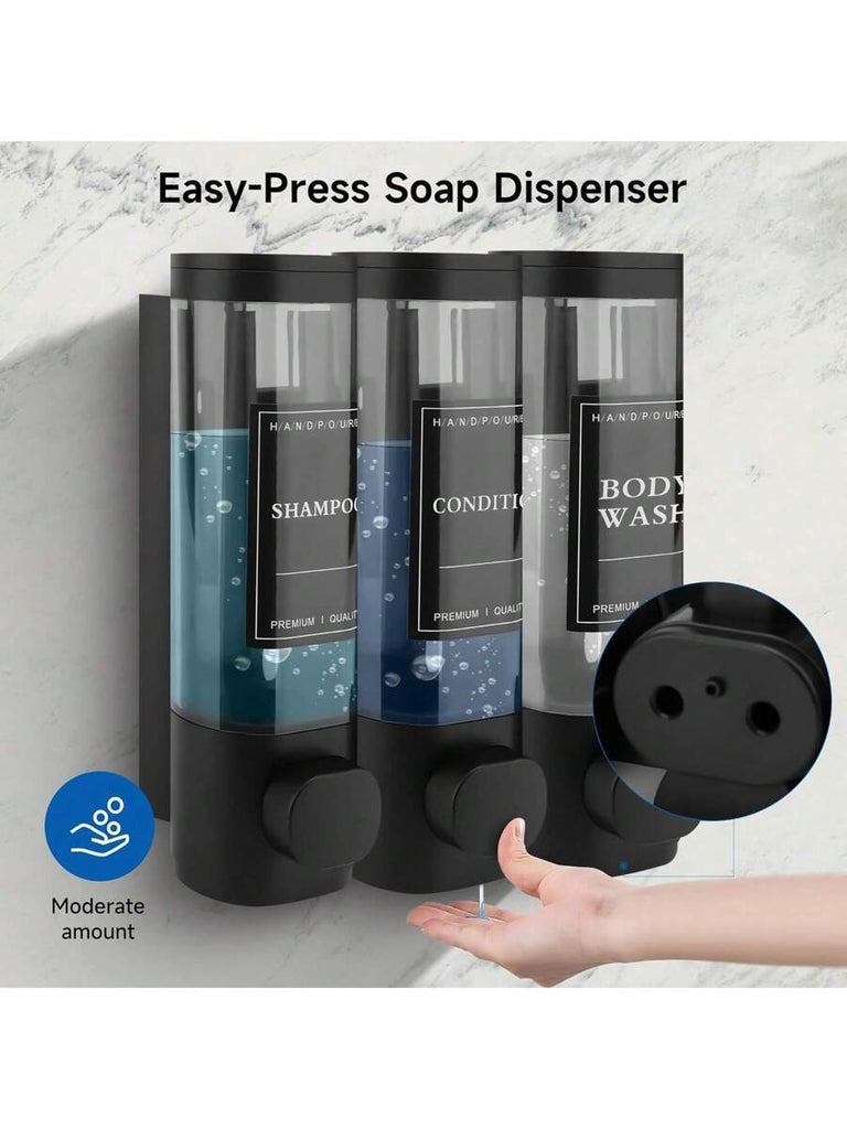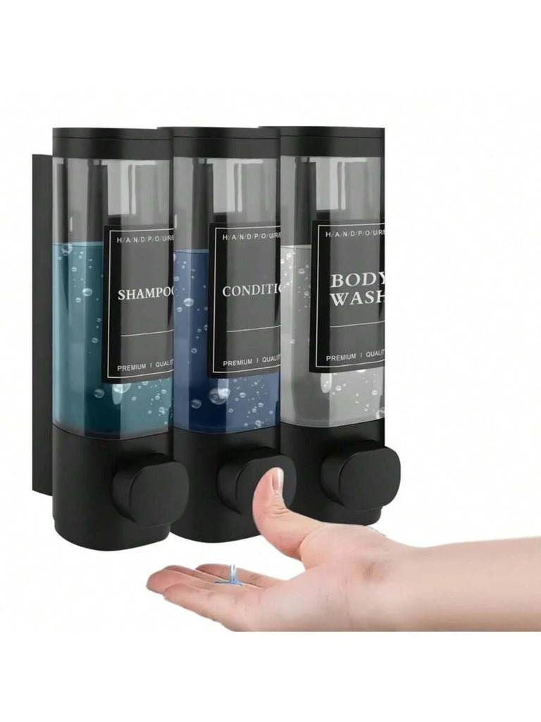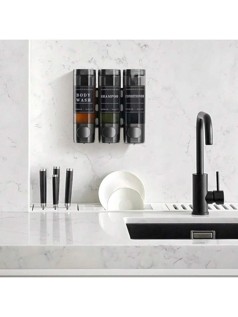 Soap Bathroom Shower, Indoor Liquid Soap, Lotion And Gel Dispenser, Wall Mounted No-Drill, Transparent Brown With Label Lock, Suitable For Bathroom, Shower, Kitchen, Black, Dark Gray, White, Two Bottles, Three Bottles, 300ml/Bottle Bathroom Decor Fall Dec
