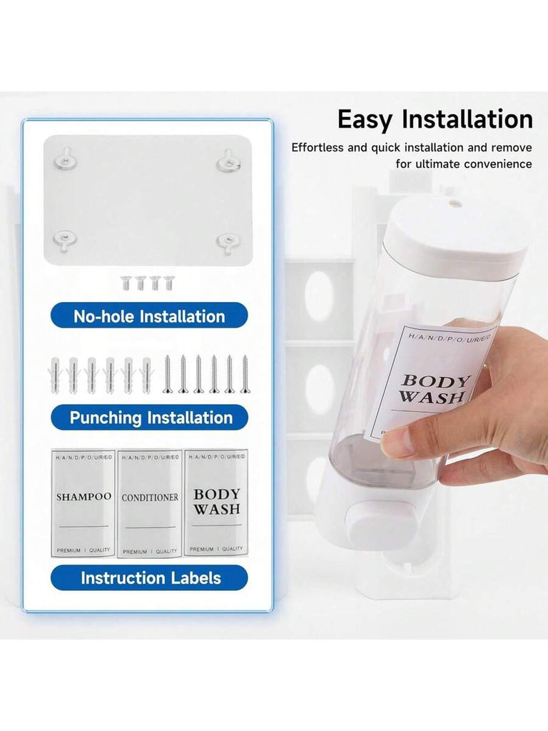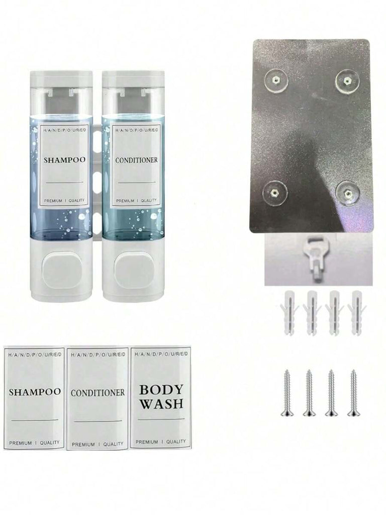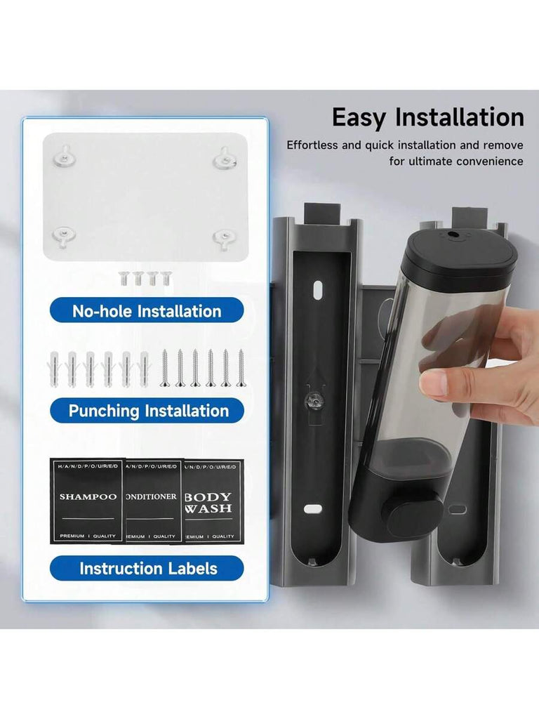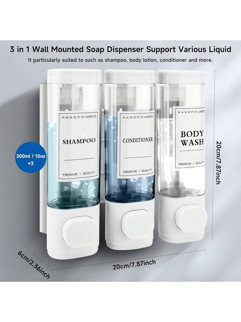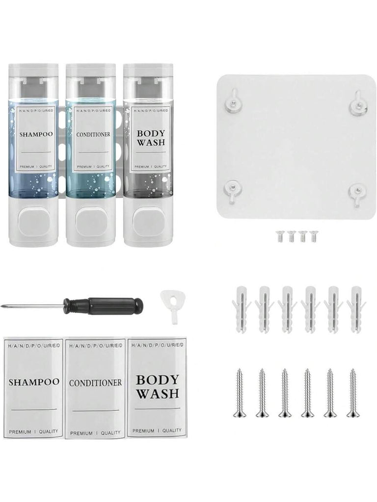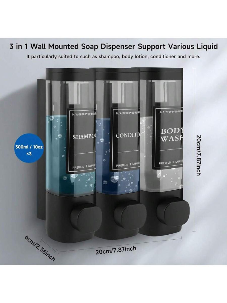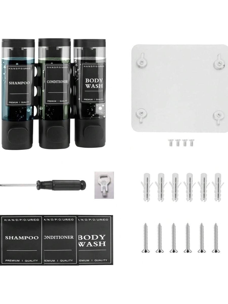 Soap Bathroom Shower, Indoor Liquid Soap, Lotion And Gel Dispenser, Wall Mounted No-Drill, Transparent Brown With Label Lock, Suitable For Bathroom, Shower, Kitchen, Black, Dark Gray, White, Two Bottles, Three Bottles, 300ml/Bottle Bathroom Decor Fall Dec