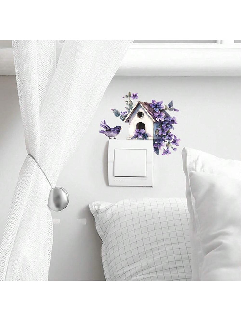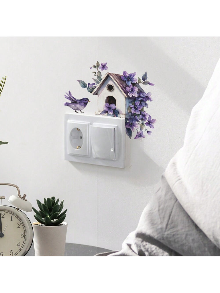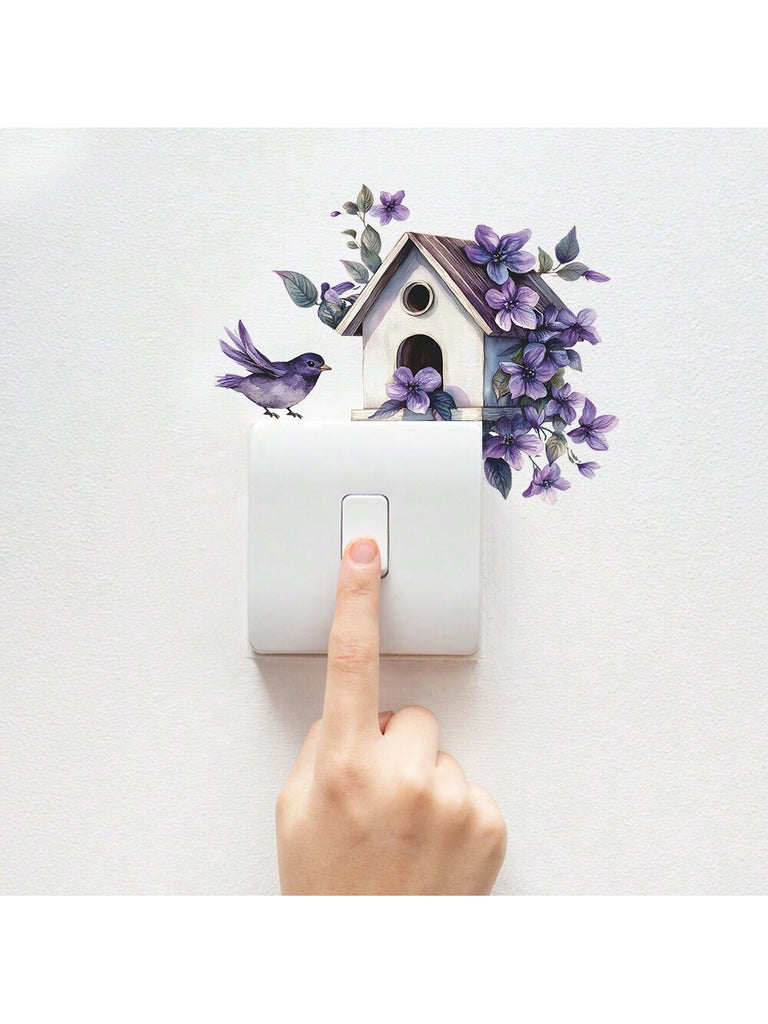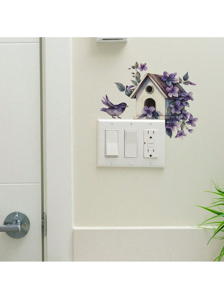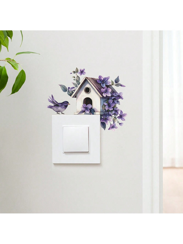 1pc Painted Birdhouse & Flower Decorative Switch Sticker Gifts