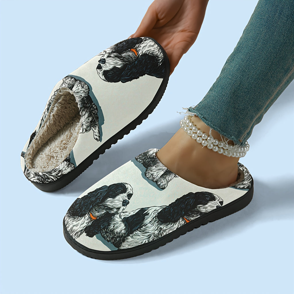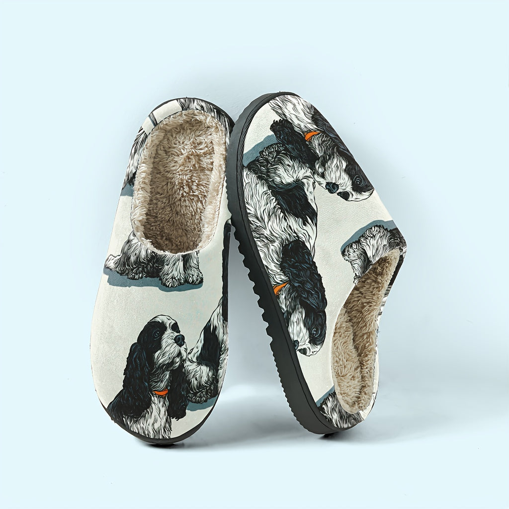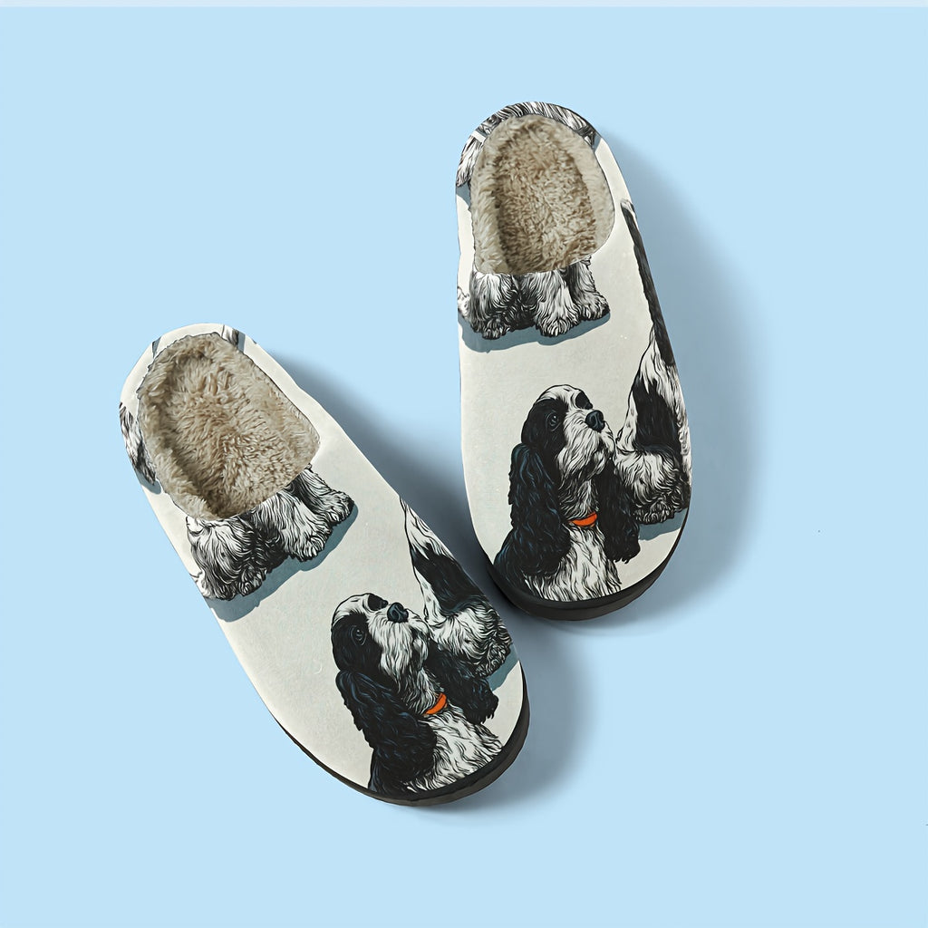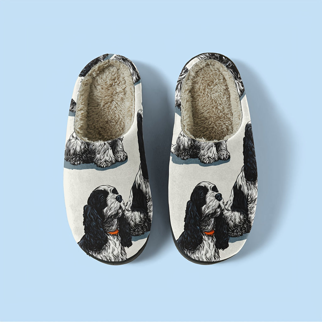 1 Pair Women'S Slip-On House Shoes - Cocker Spaniel Dog Design Indoor Slippers, Soft Warm Fabric House Shoes with Non-Slip TPR Sole, Cozy Home Footwear for Women & Dog Lovers - Perfect Gift for Pet Owners, Cute Slippers, Playful Design, Comfortable Fit,