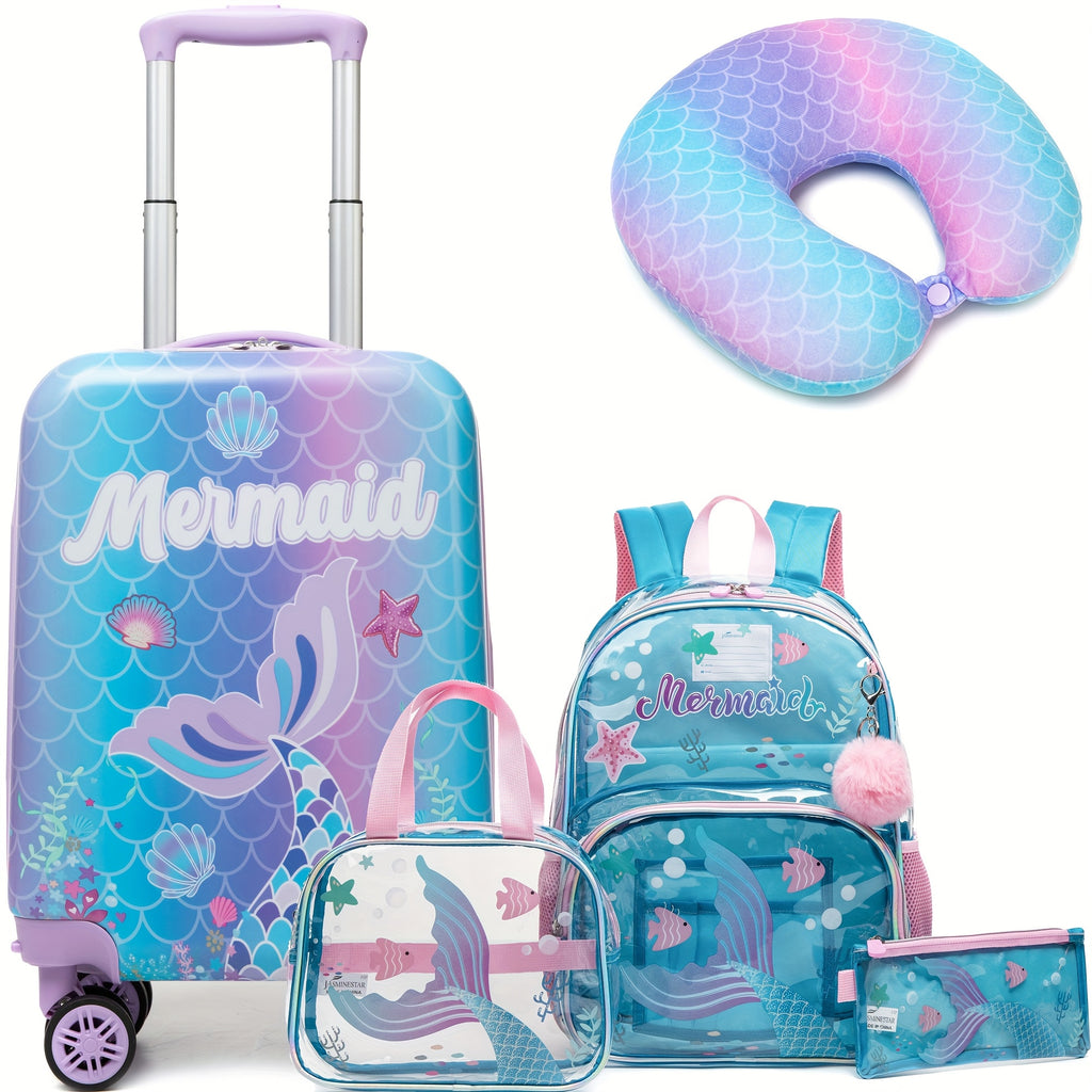 16 Inch Girls' cute 5pcs Hard Shell Suitcase Set with Spinner Wheels Student Luggage Airline Approved Carry On Luggage for Toddlers Travel Vacation Portable luggage rolling luggage