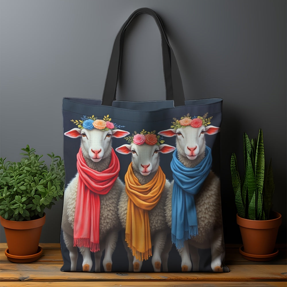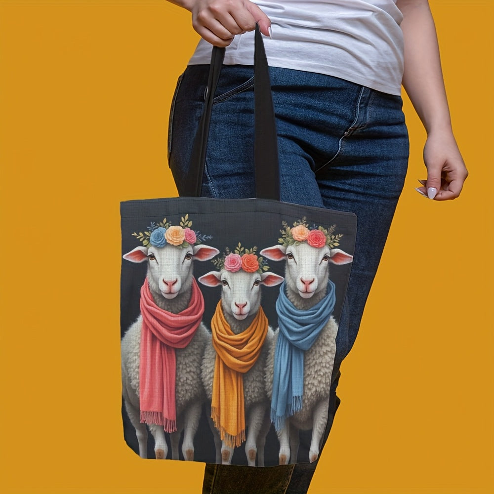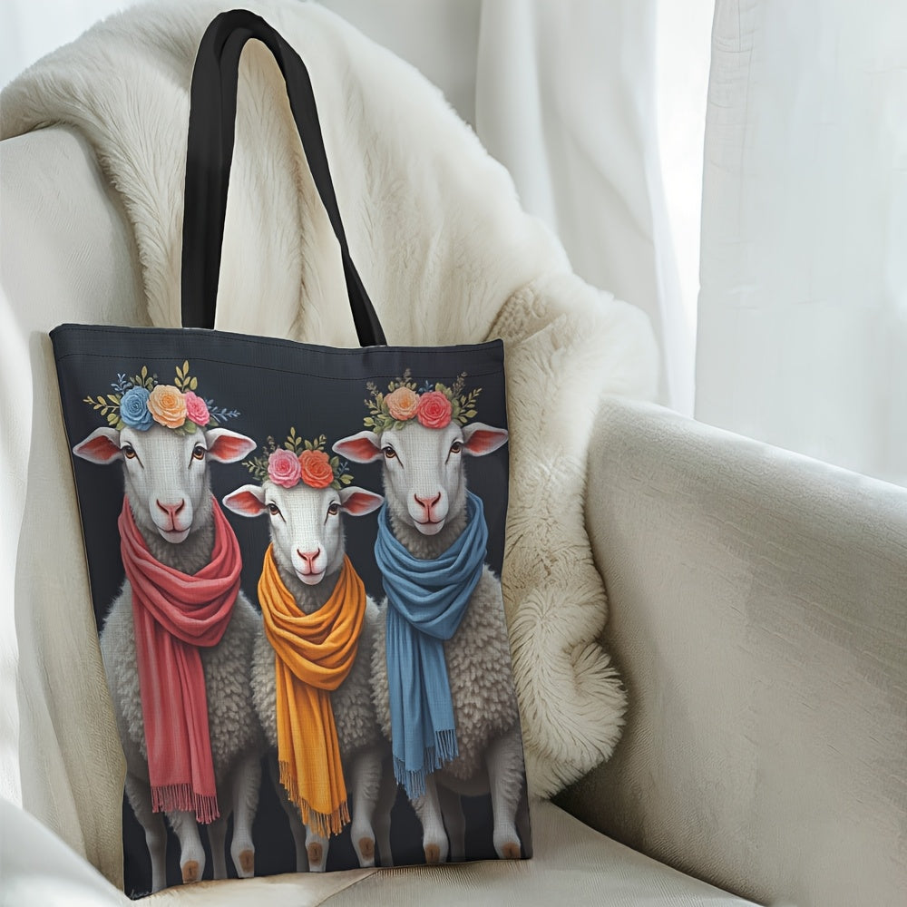 1pc Festive Sheep Tote Bag - Lightweight Polyester, No-Closure Design with Fixed Shoulder Straps, Perfect for Shopping, Travel & Casual Use, Ideal Gift for Sheep Lovers, Casual Accessory | Playful Design | Durable Handle, Sheep Lover Gifts