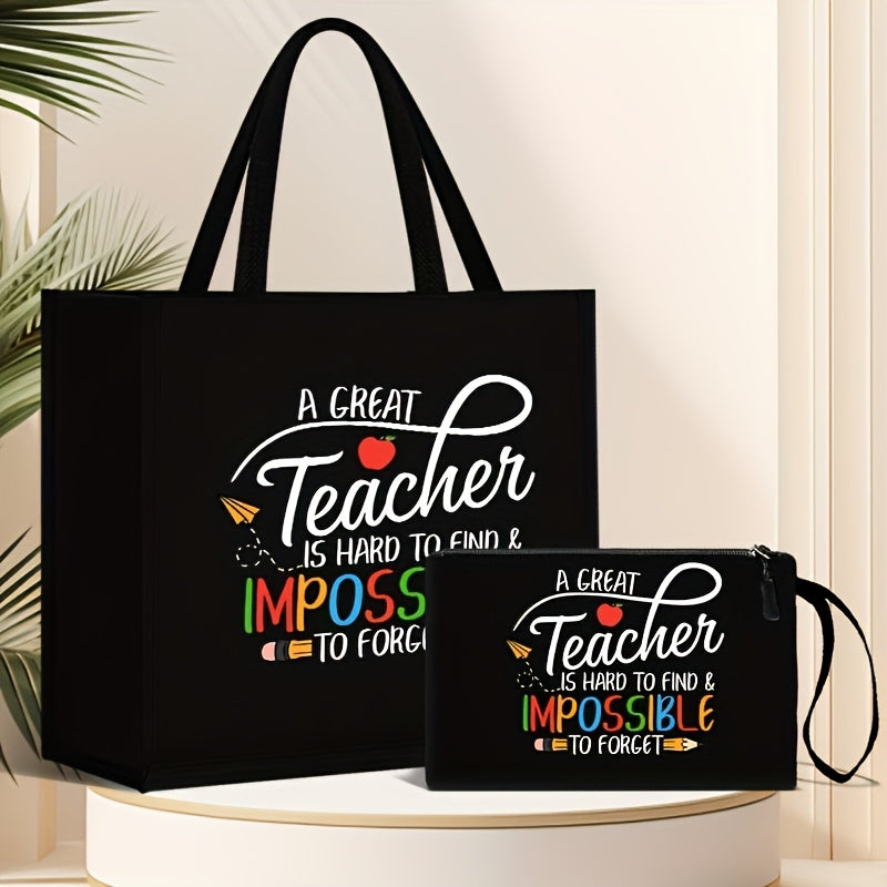 1set Preppy Style Teacher Appreciation Fabric Tote and Makeup Bag Set with Fixed Shoulder Straps - Lightweight, Hand Washable, Magnetic Closure, Lined - Ideal Gift for Colleagues, Friends, and Travel