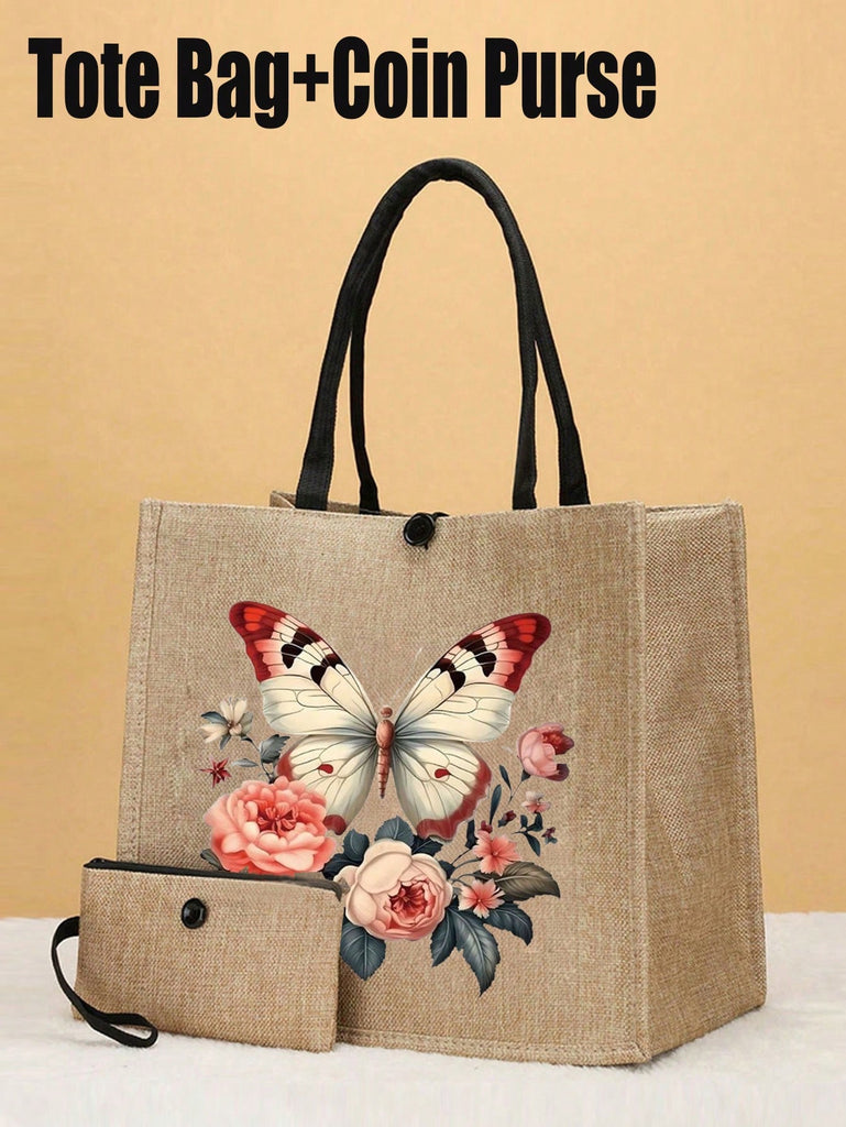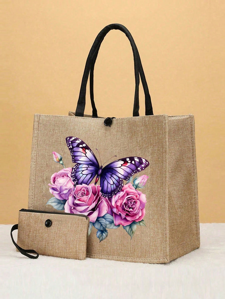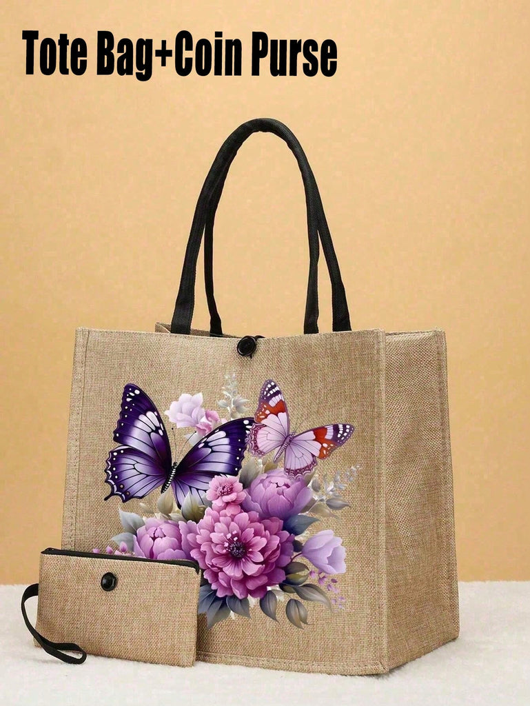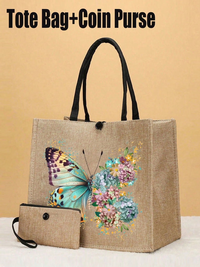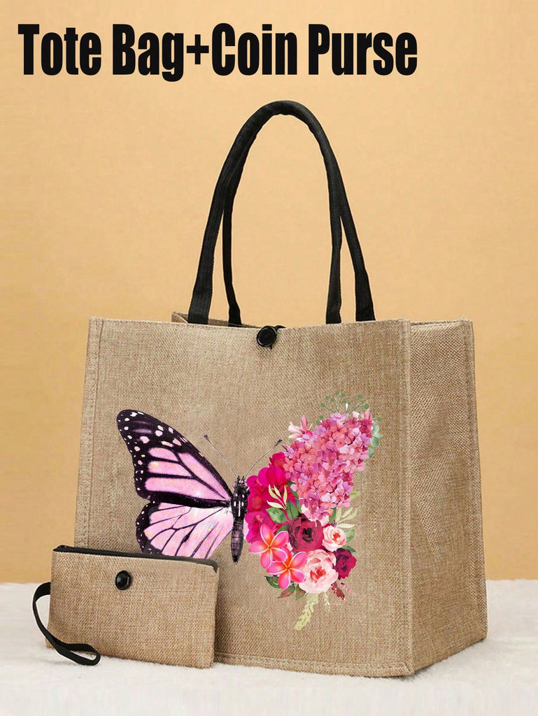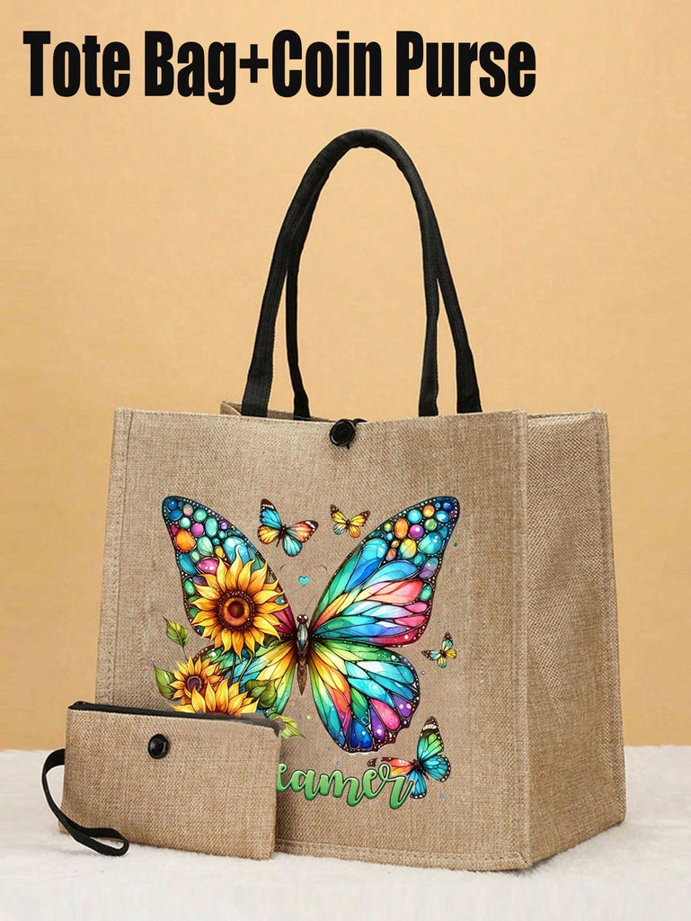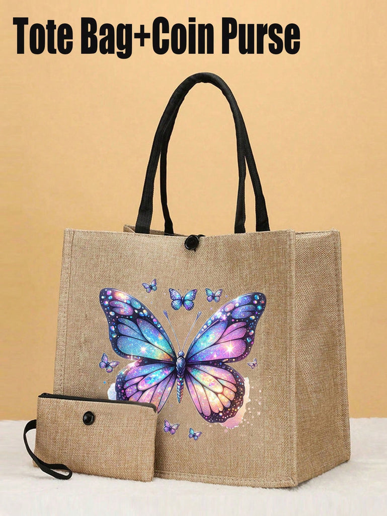2pcs Fashionable Geometric Print Tote Bag Set, Large Capacity Casual Handbag With Fixed Straps, Foldable Design, Magnetic Closure, Polyester Lined, Non-Washable - Black