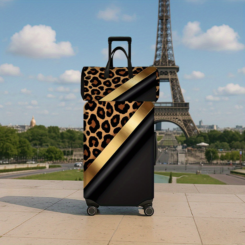 2pcs Leopard Print and Golden Line Design Luggage Set, featuring a unique stylish design that includes one suitcase cover and one handbag. Essential travel accessory; perfect for trips and outings to meet your personal style needs