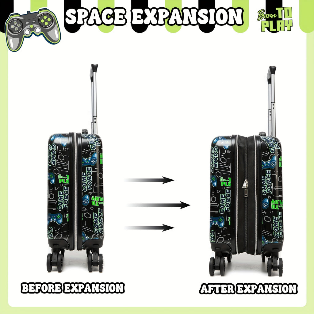 5pcs Game Controller Design Kids Wheeled Luggage Set Multifunctional Travel Backpack for School Camping and Trips Great Gift for Boys and Girls