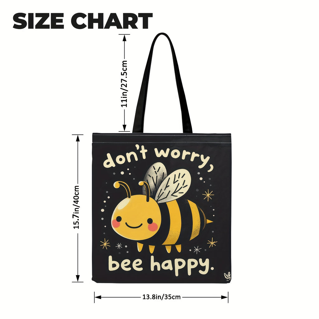 Adorable "Don't Worry, Bee Happy" Bee-Themed Tote Bag with Fixed Shoulder Straps - Vibrant Yellow & Black Design, Perfect for Shopping, Outdoor Activities & Family Gatherings - Ideal Gift, Everyday Tote Bag|Playful Design|Durable Handle, Cute Tote Bag