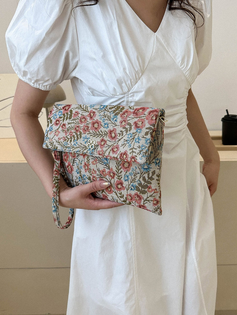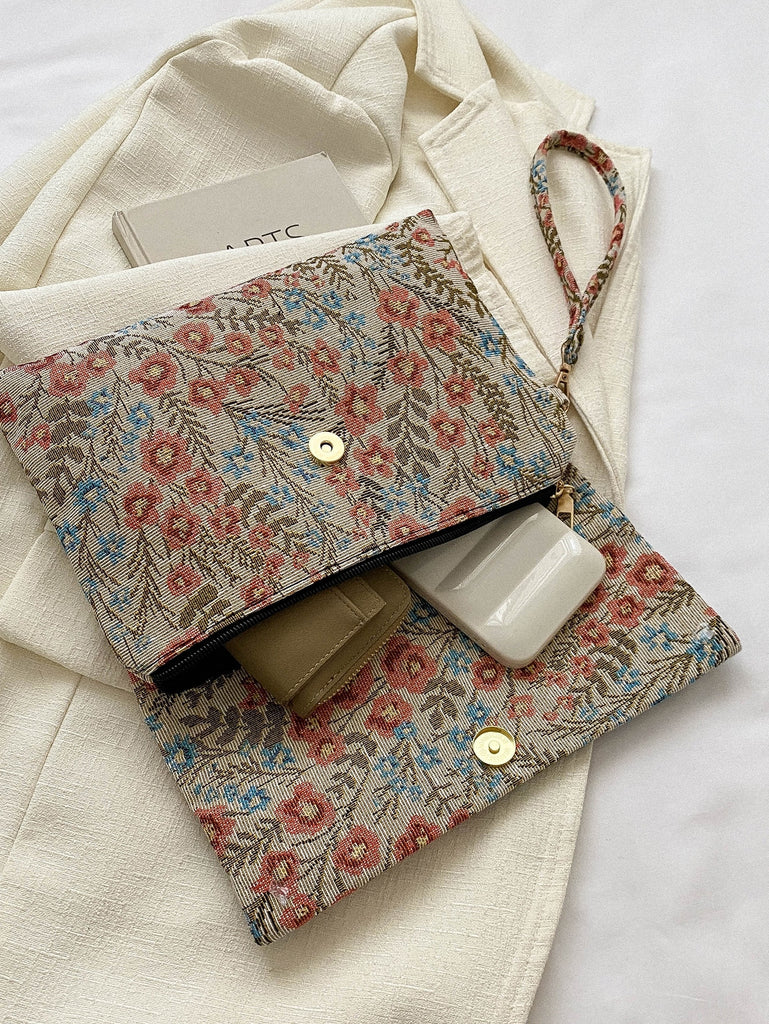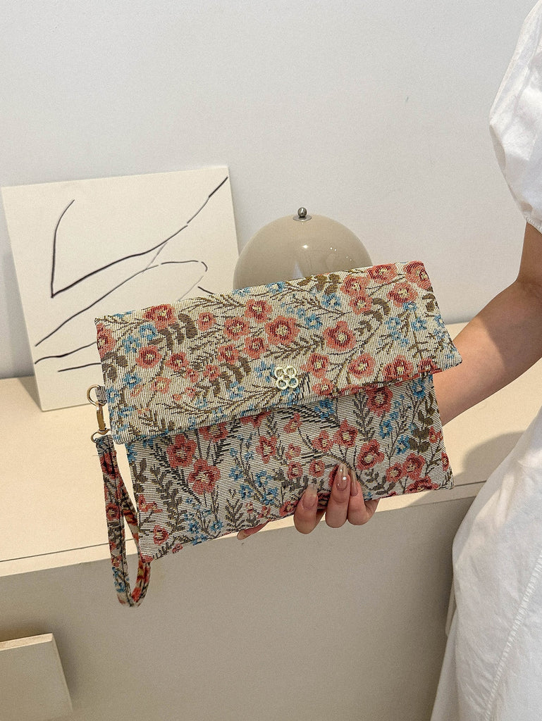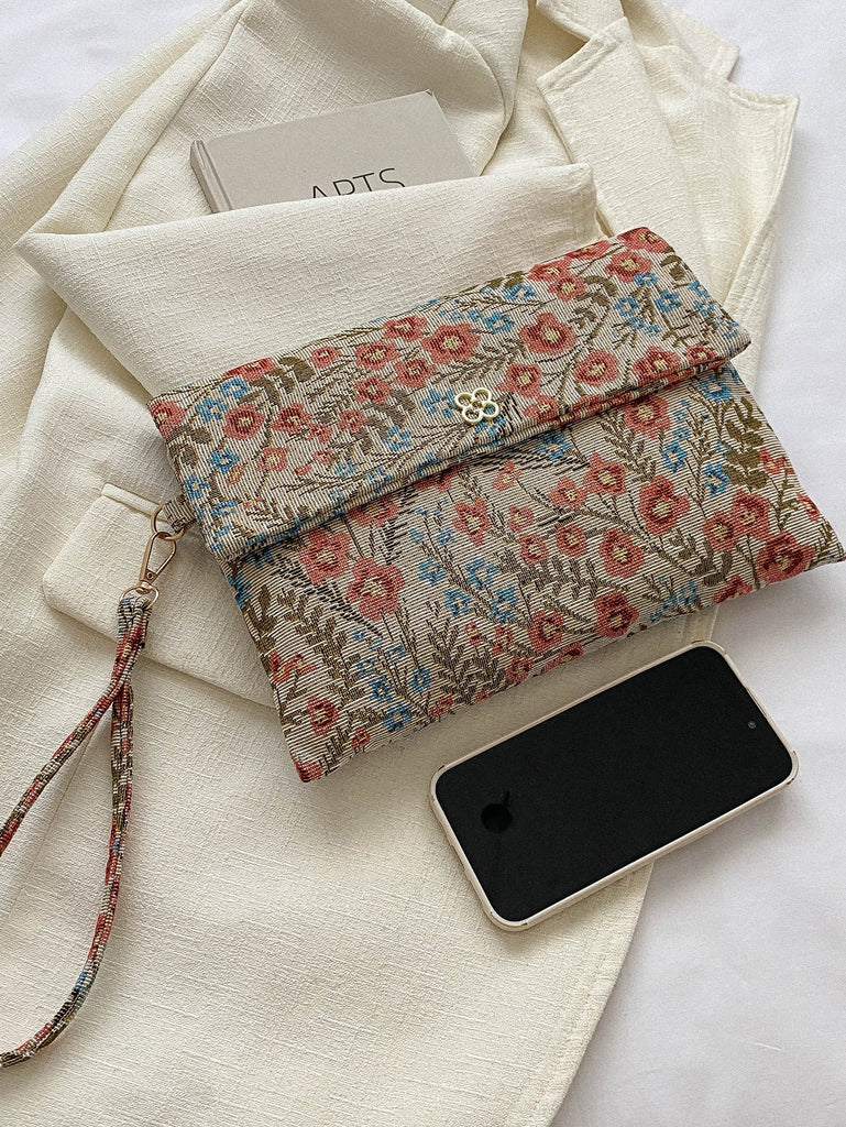 Fashionable Colorful Flower Embroidered Flap Multifunctional Clutch Handbag For Women