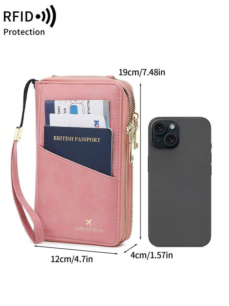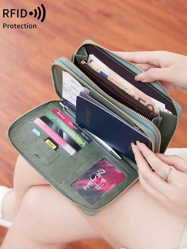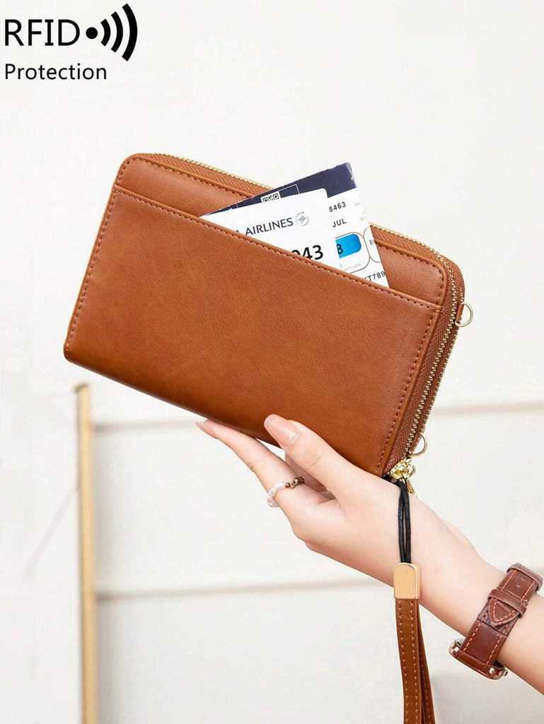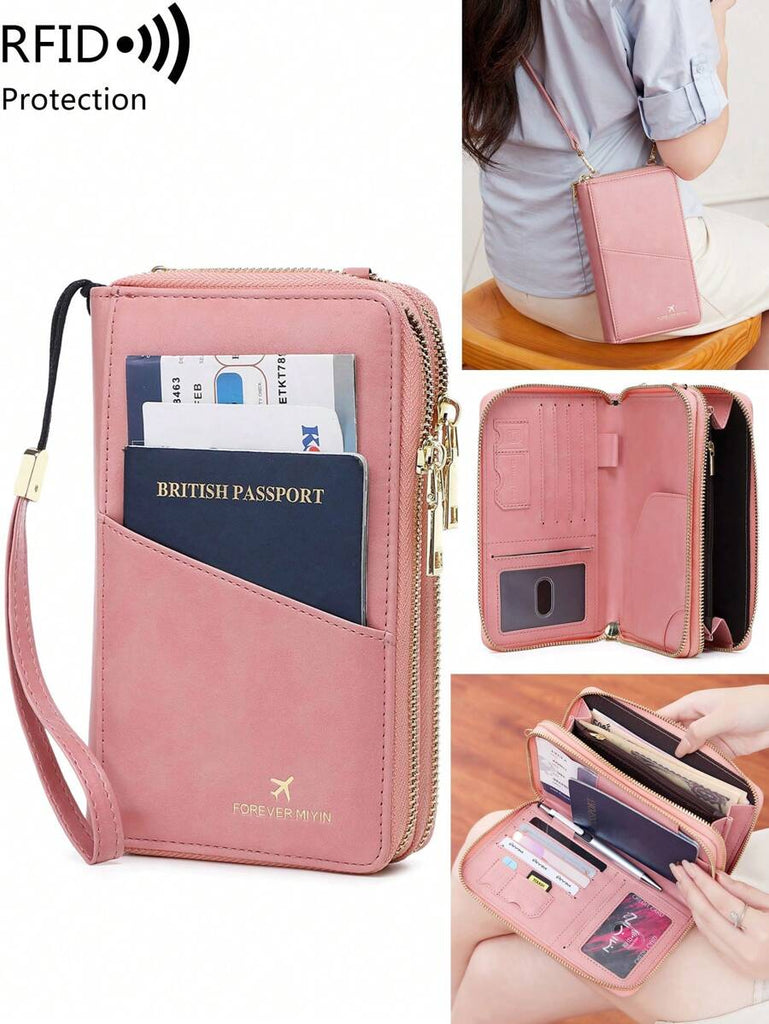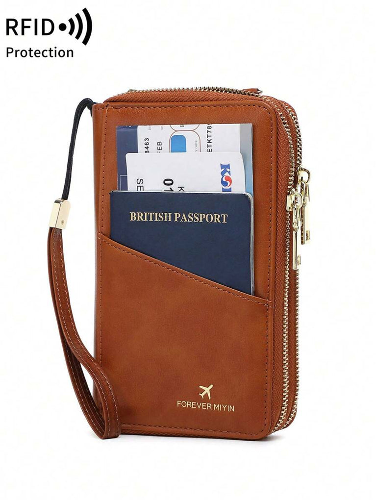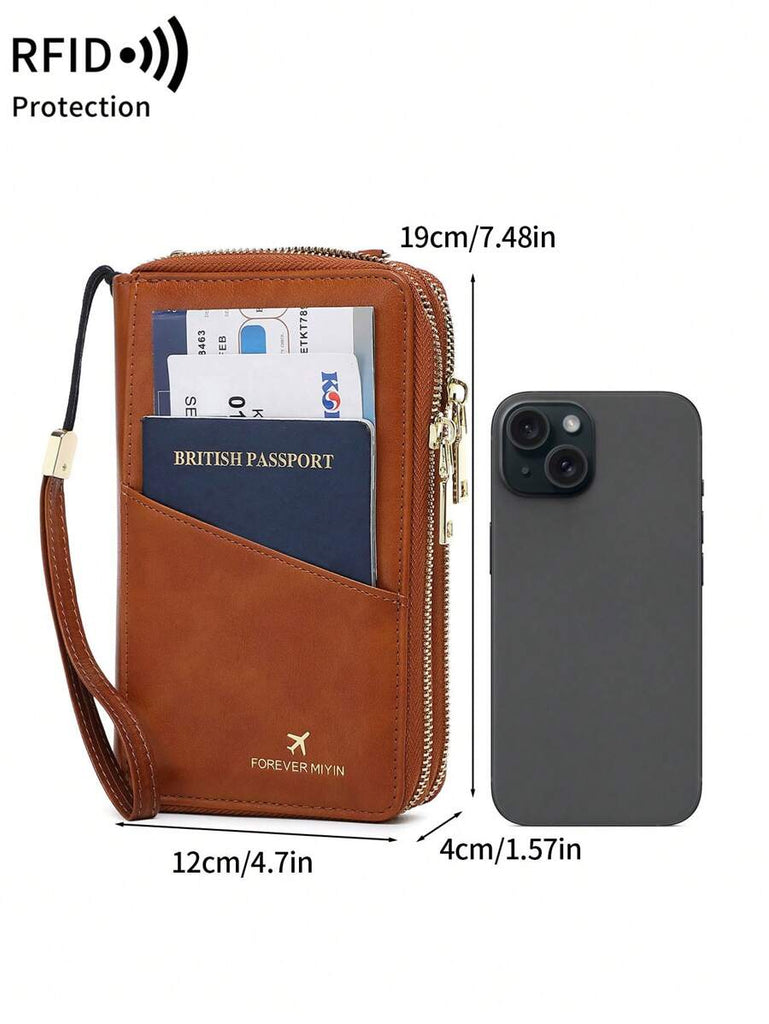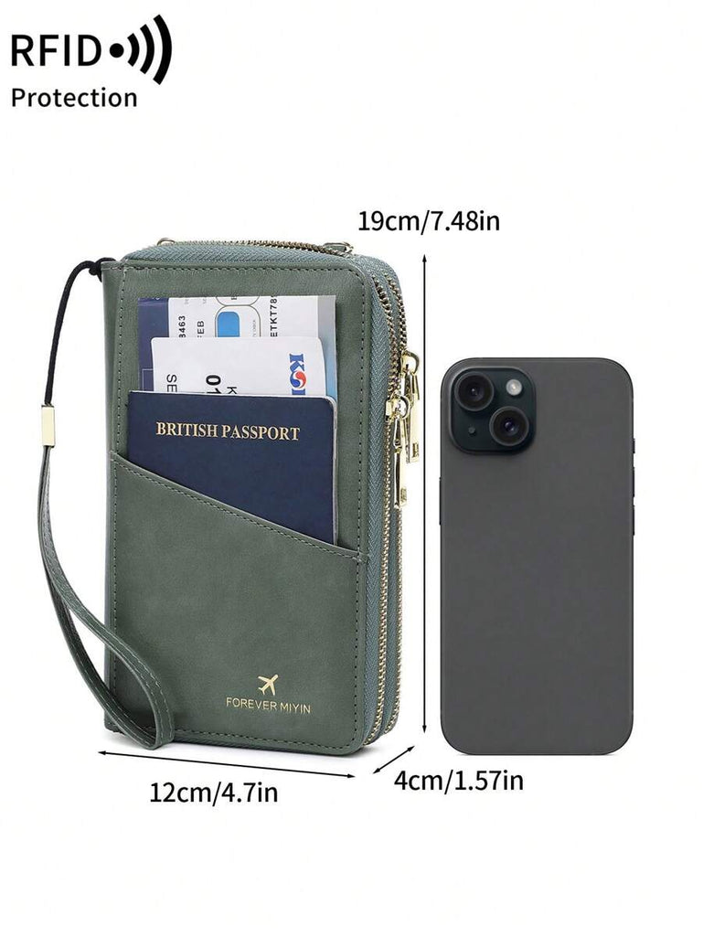 MIYIN Fashionable Dual-Zipper Large Capacity RFID Blocking Passport Holder Credit Card Holder For Men And Woman With Wrist Strap And Adjustable Shoulder Strap Multifunction Travel Wallet Phone Wallet Passport Case For Credit Card/ ID Card/ Tickets/ Cash/P