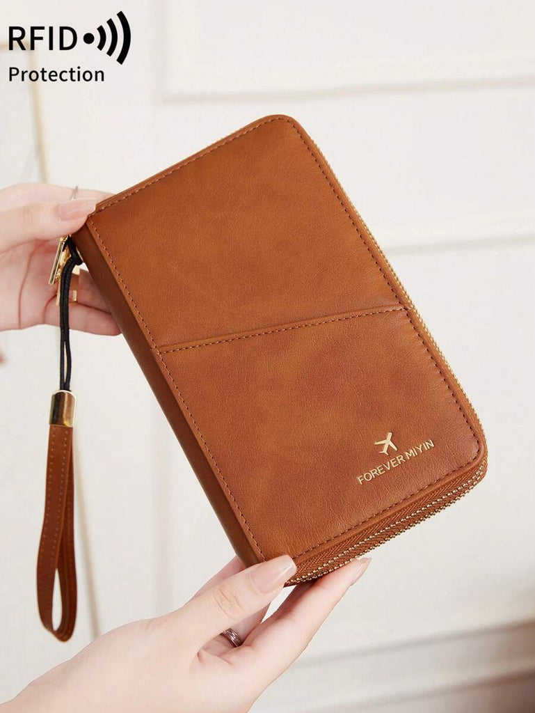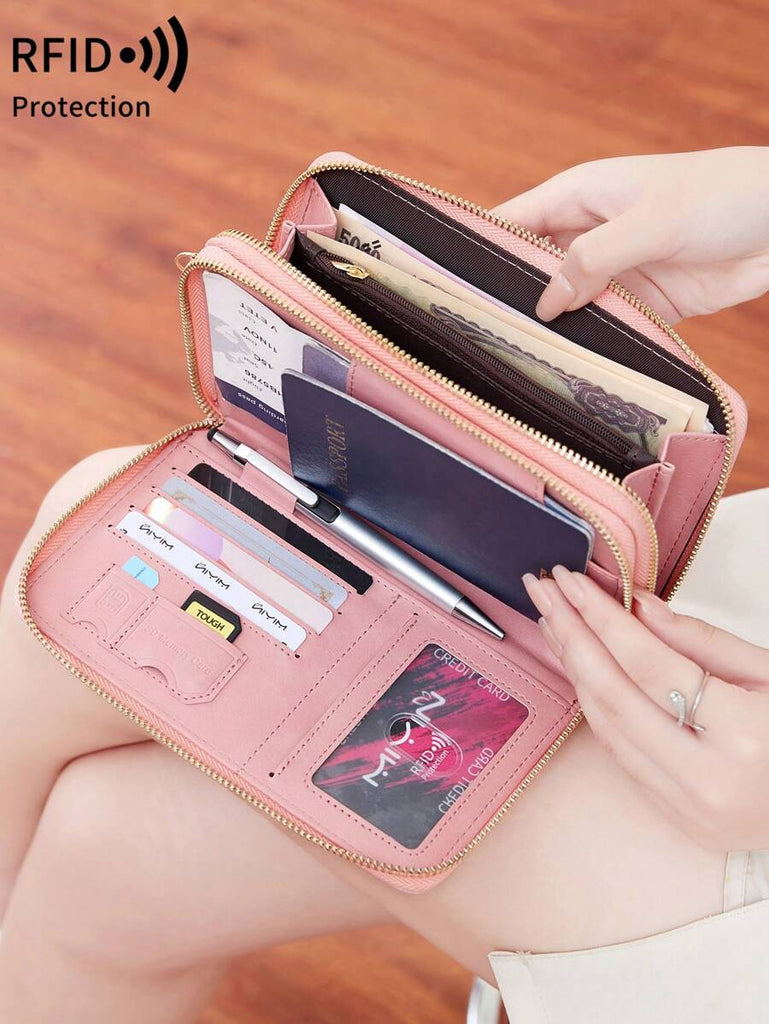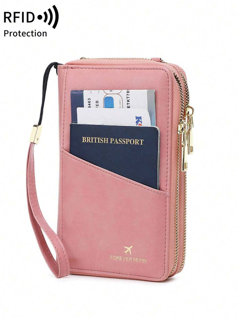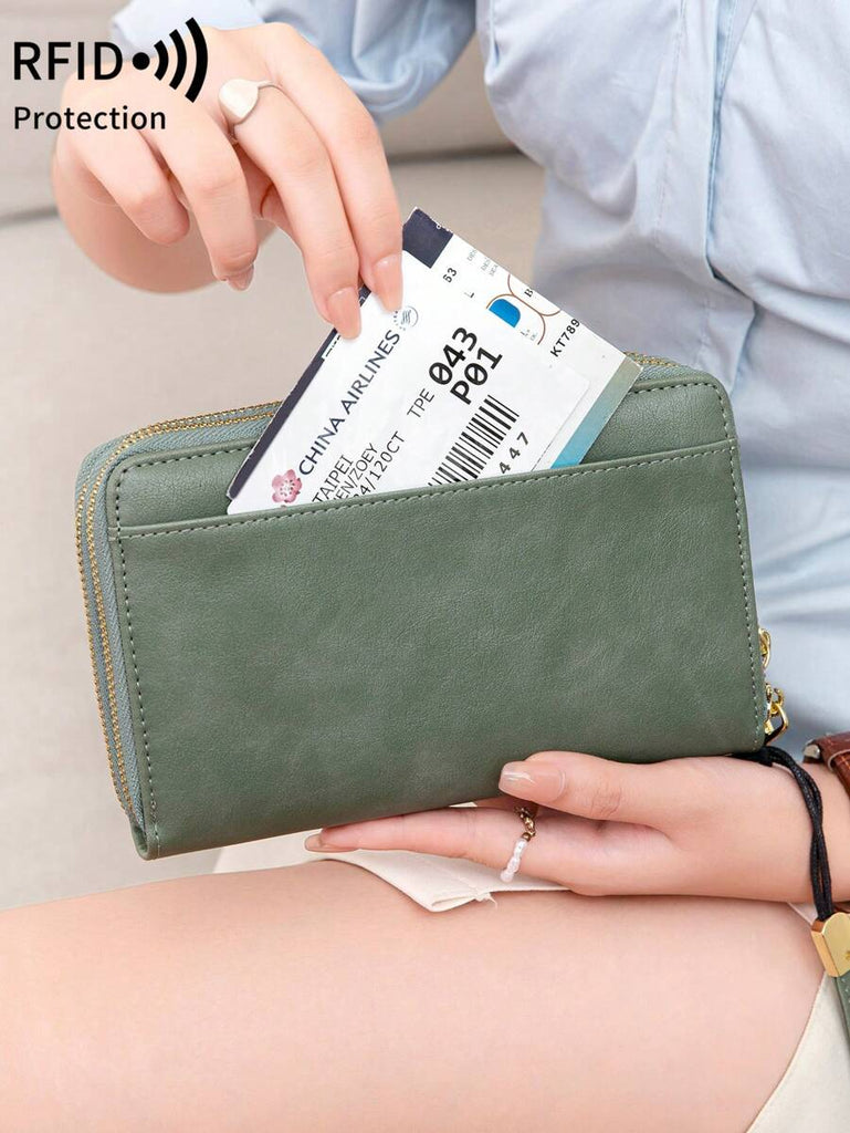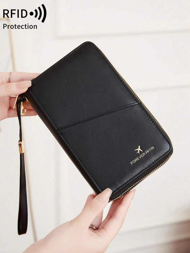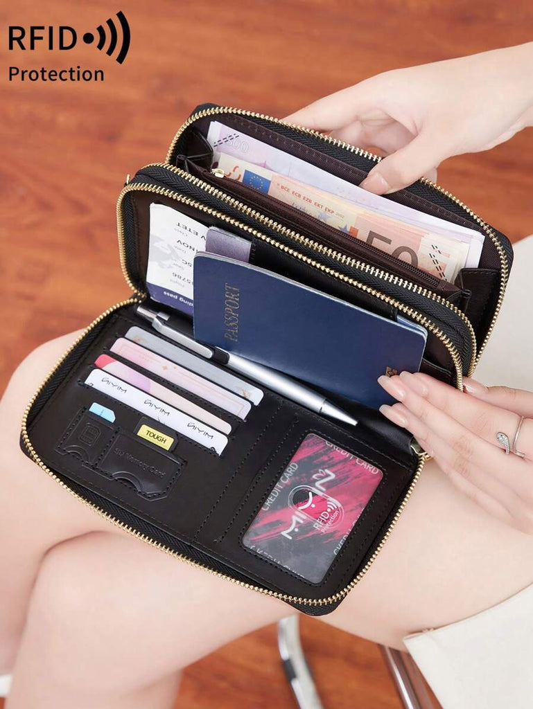MIYIN Fashionable Dual-Zipper Large Capacity RFID Blocking Passport Holder Credit Card Holder For Men And Woman With Wrist Strap And Adjustable Shoulder Strap Multifunction Travel Wallet Phone Wallet Passport Case For Credit Card/ ID Card/ Tickets/ Cash/P