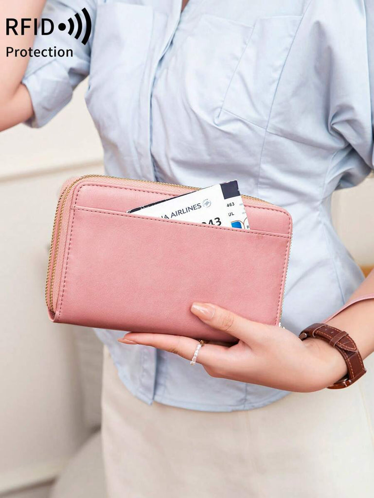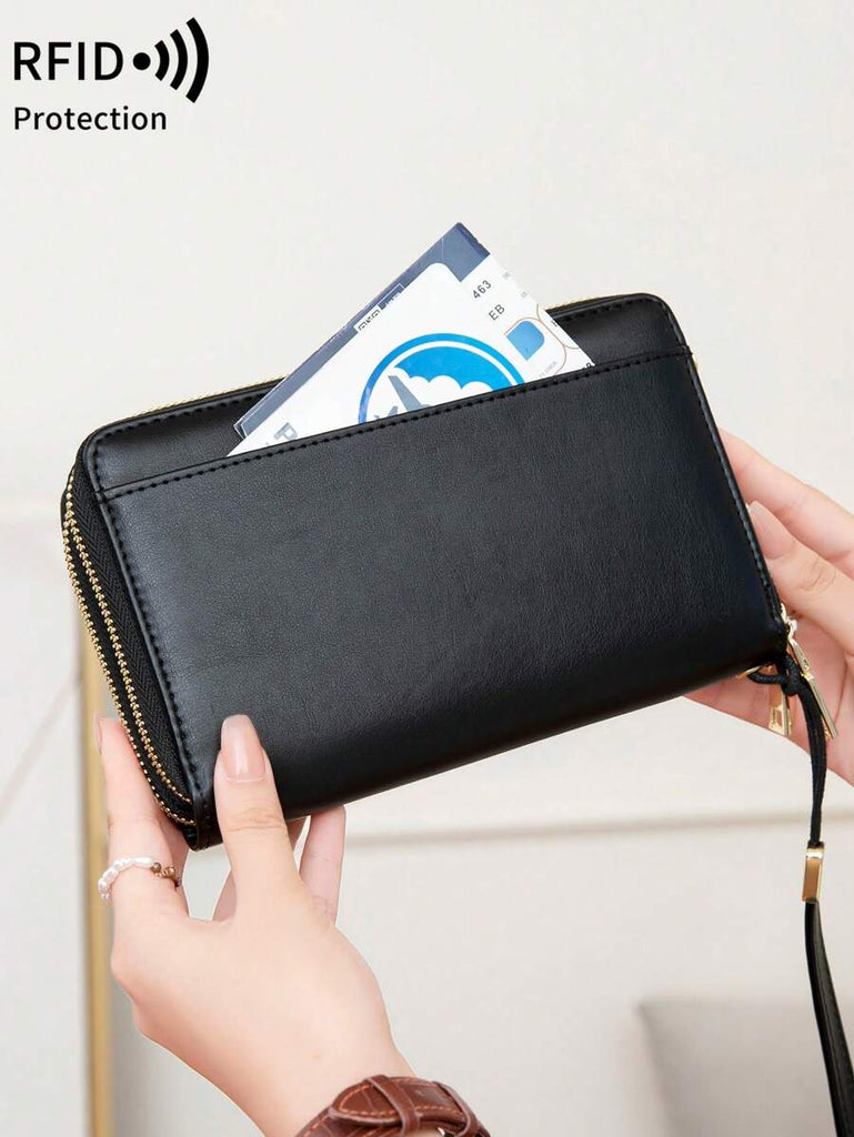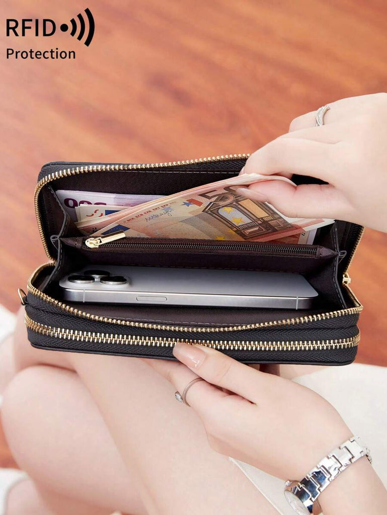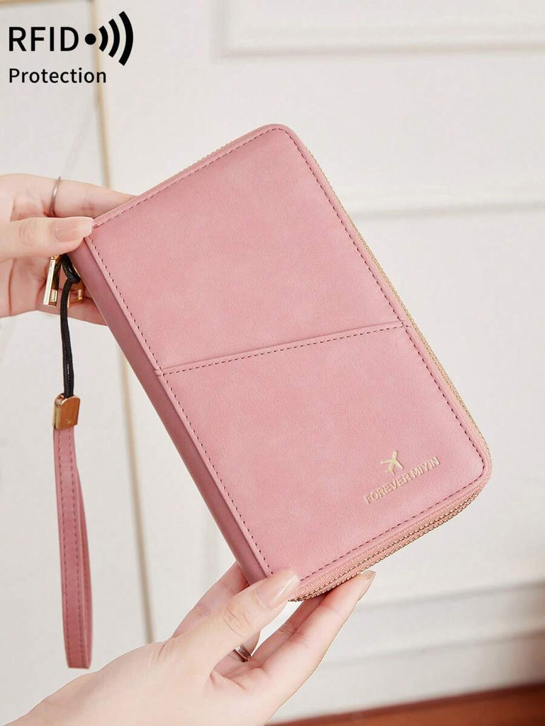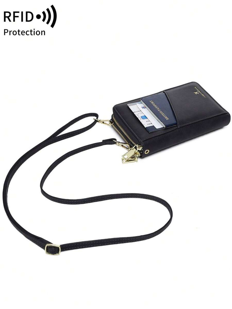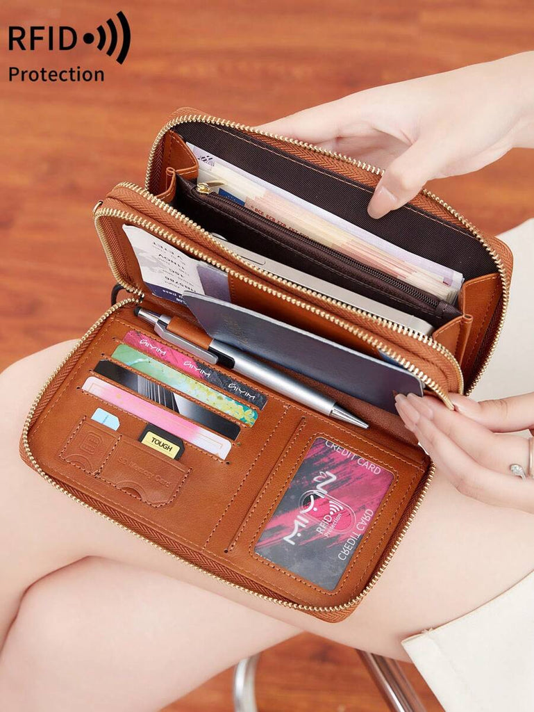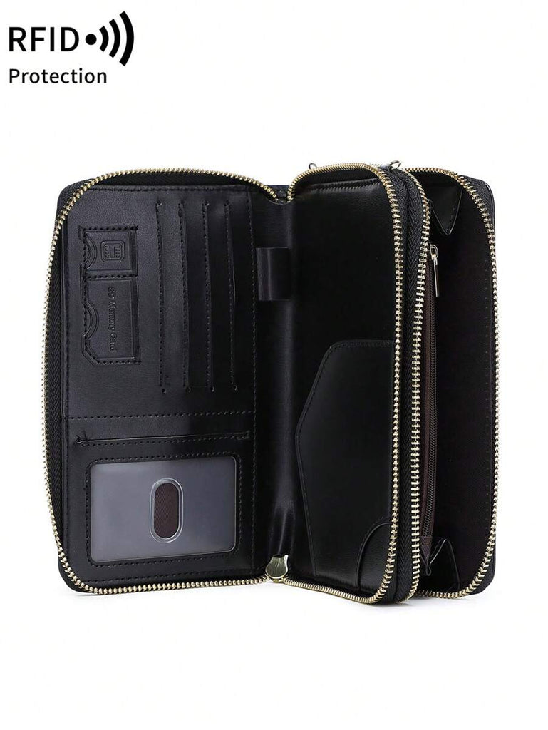 MIYIN Fashionable Dual-Zipper Large Capacity RFID Blocking Passport Holder Credit Card Holder For Men And Woman With Wrist Strap And Adjustable Shoulder Strap Multifunction Travel Wallet Phone Wallet Passport Case For Credit Card/ ID Card/ Tickets/ Cash/P