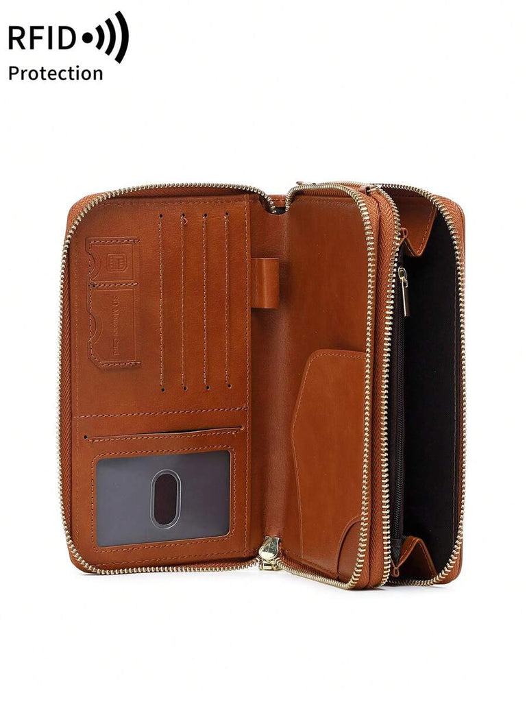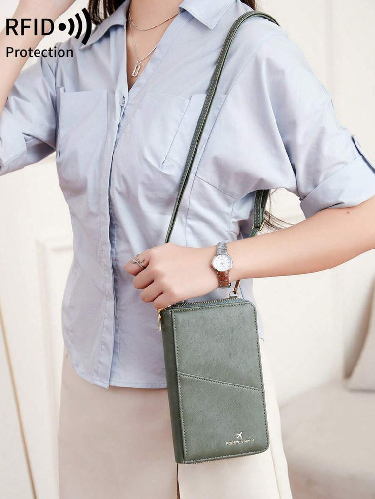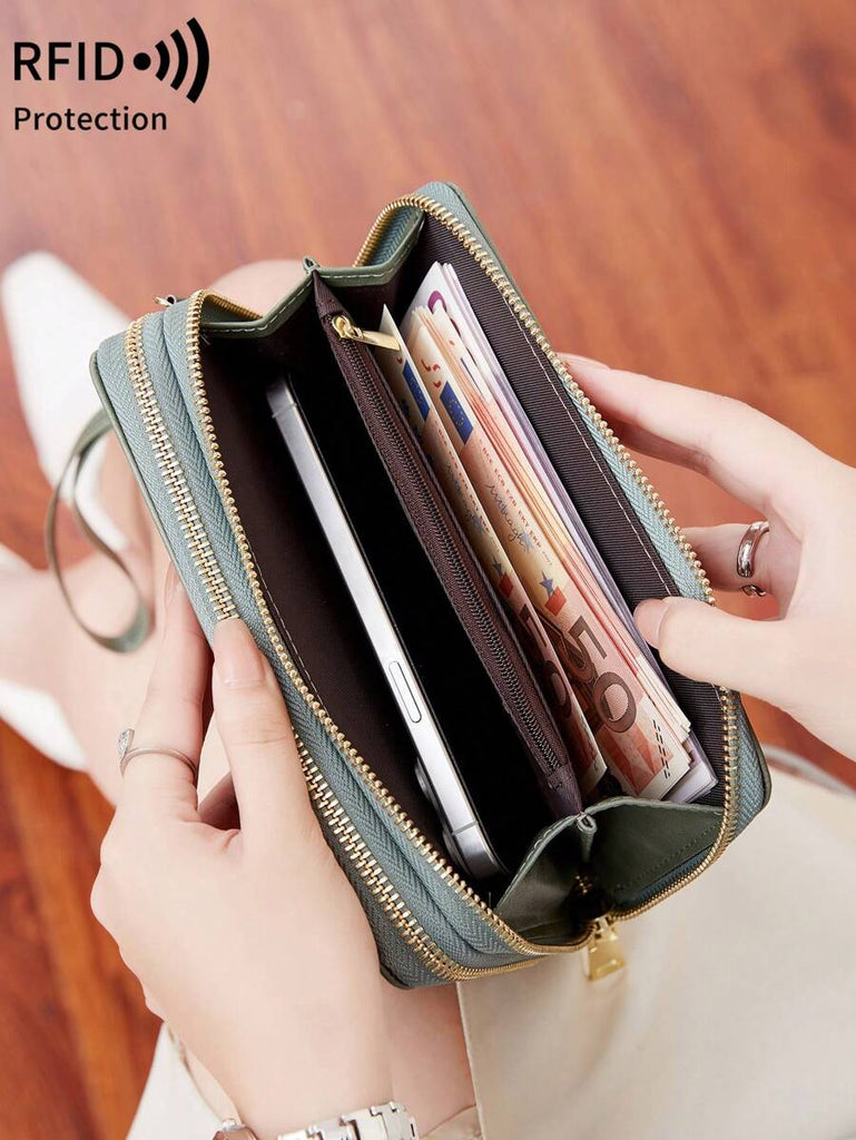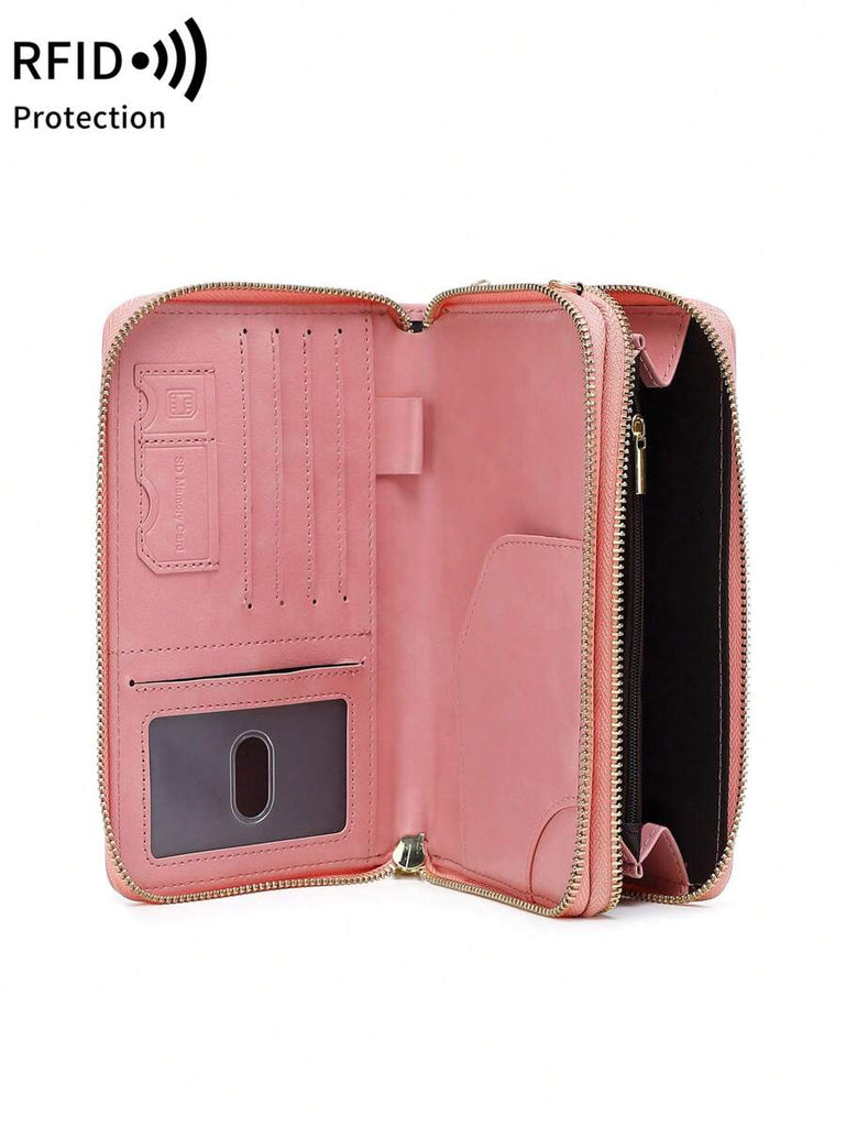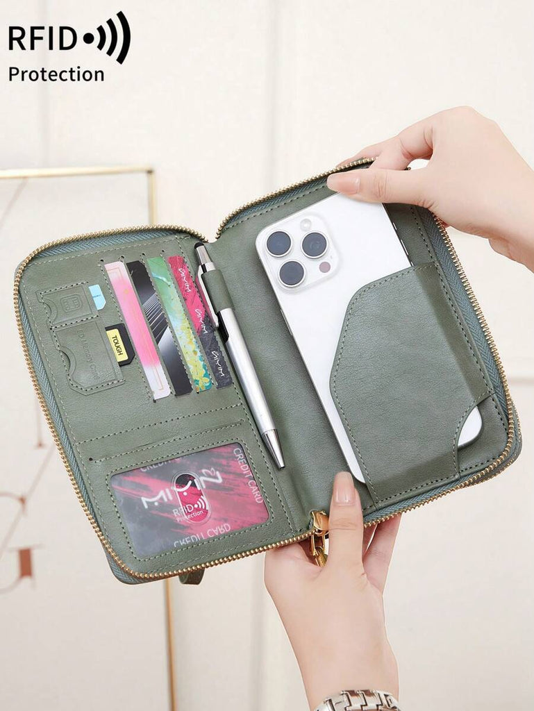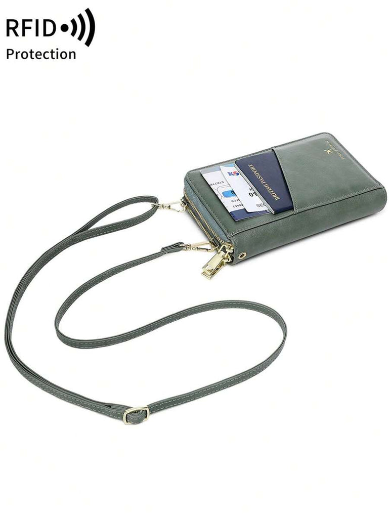 MIYIN Fashionable Dual-Zipper Large Capacity RFID Blocking Passport Holder Credit Card Holder For Men And Woman With Wrist Strap And Adjustable Shoulder Strap Multifunction Travel Wallet Phone Wallet Passport Case For Credit Card/ ID Card/ Tickets/ Cash/P