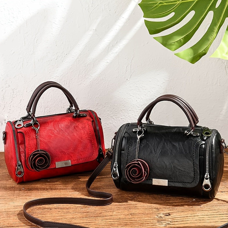 Women's Casual Crossbody Shoulder Bag - Detachable Strap, Large Capacity Multi-Compartment, Visually Appealing Rose Clasp, Durable PVC, Zipper Closure, Earthy Yellow/Red/Black for Daily Use & Travel, Versatile Fashion Accessory, Secure Zipper Compartment