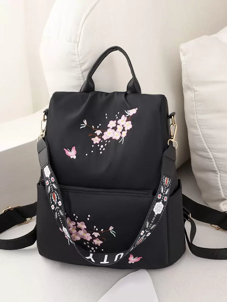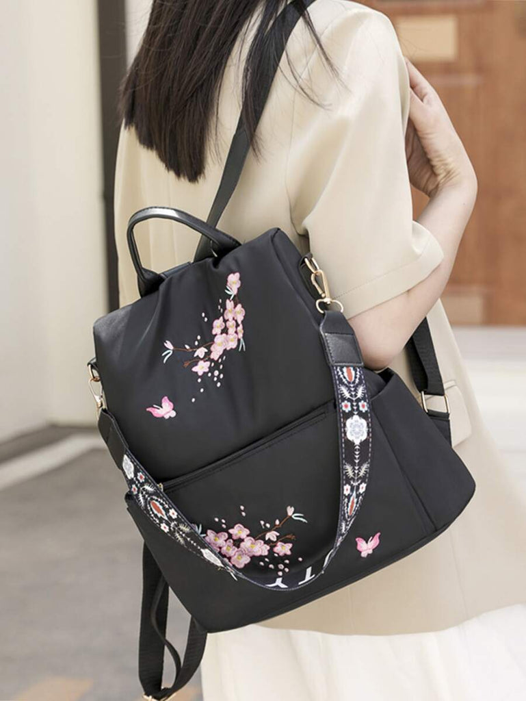 Women's Floral Embroidery Backpack Shoulder Dual-Use Casual Backpacks