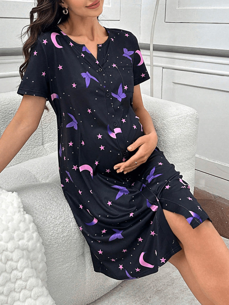 Maternity Nightgown & Robe - Nursing Dress with Lactation Cover