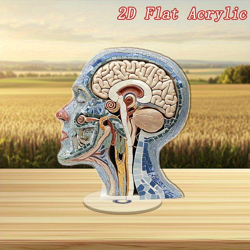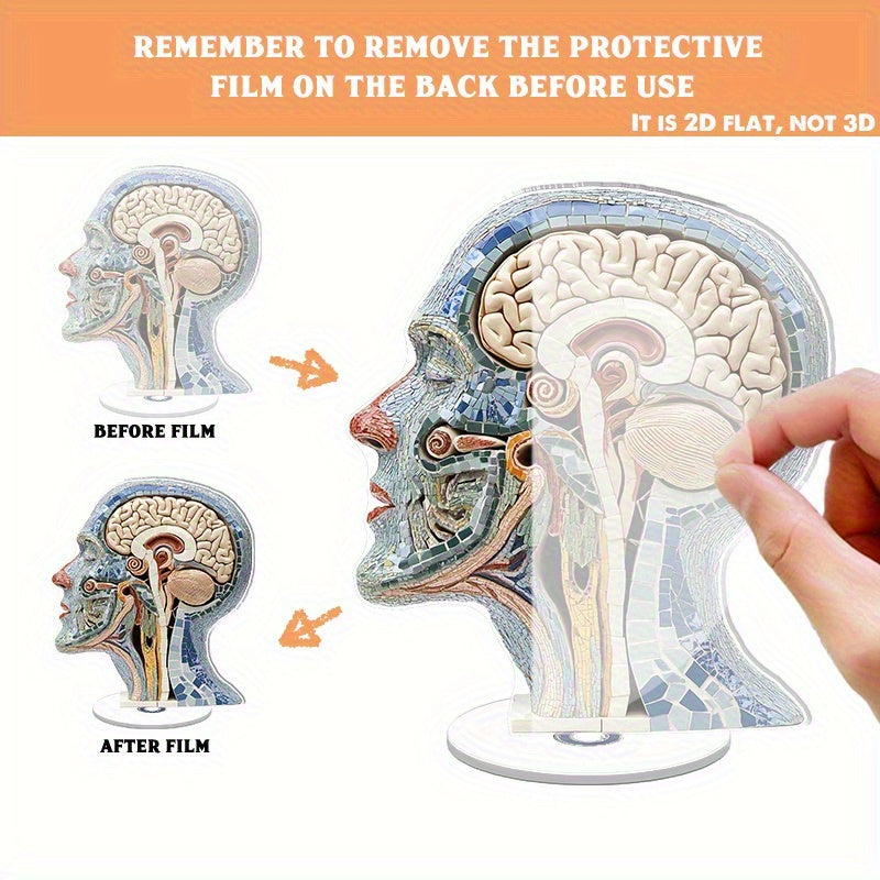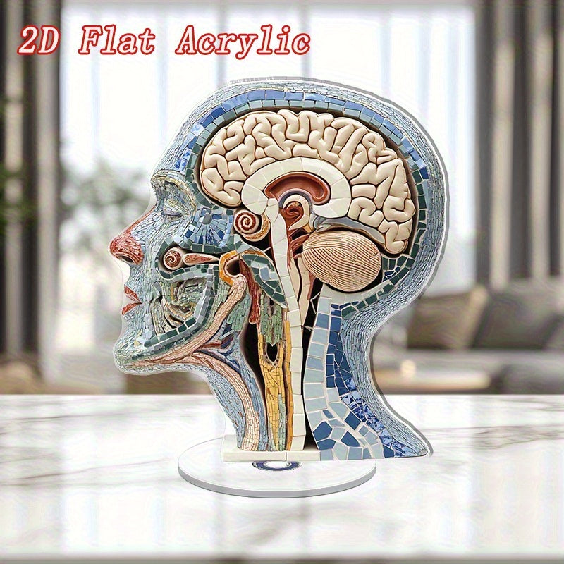 2D Flat, Rotating Anatomical Brain Desk Decor - with Brain & Neural Patterns, No Electricity Needed - Medical Office, Neuroscience Lab Decoration - Educational Tool for Psychiatrists, Neurologists, Students - Durable Acrylic Construction - Ideal Medical