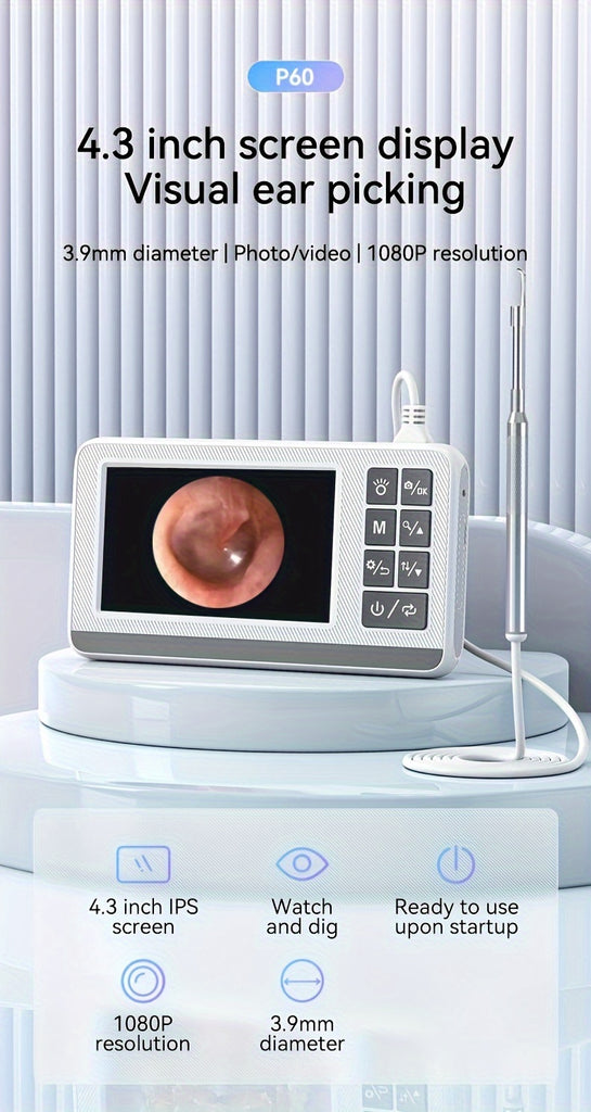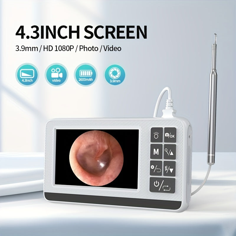 4.3" HD 1080P Rechargeable Ear Cleaning Camera with 3.9mm Lens, 2600mAh Battery, Video & Photo Mode for Professional Ear Care and Personal Use, Ear Cleaning Tool | Modern Medical Device | Portable Otoscope, Ear Wax Removal Tool