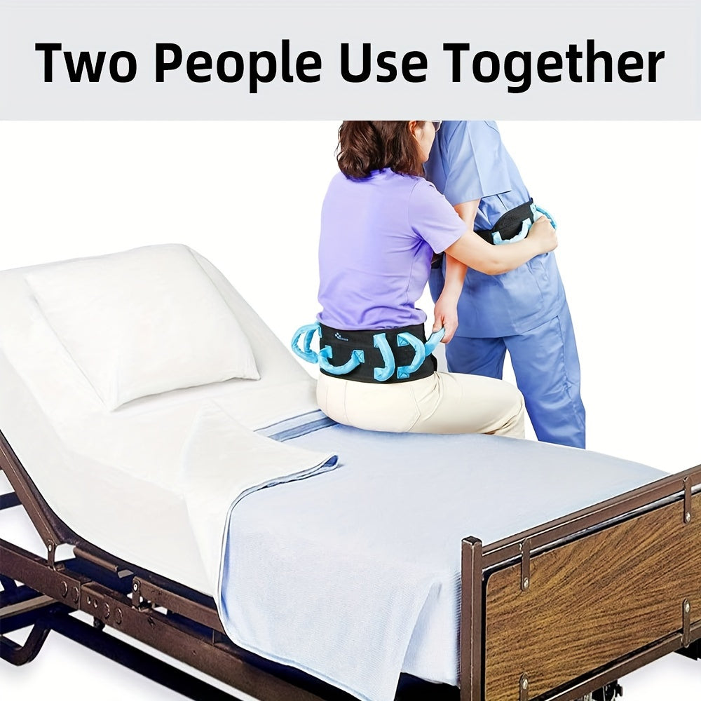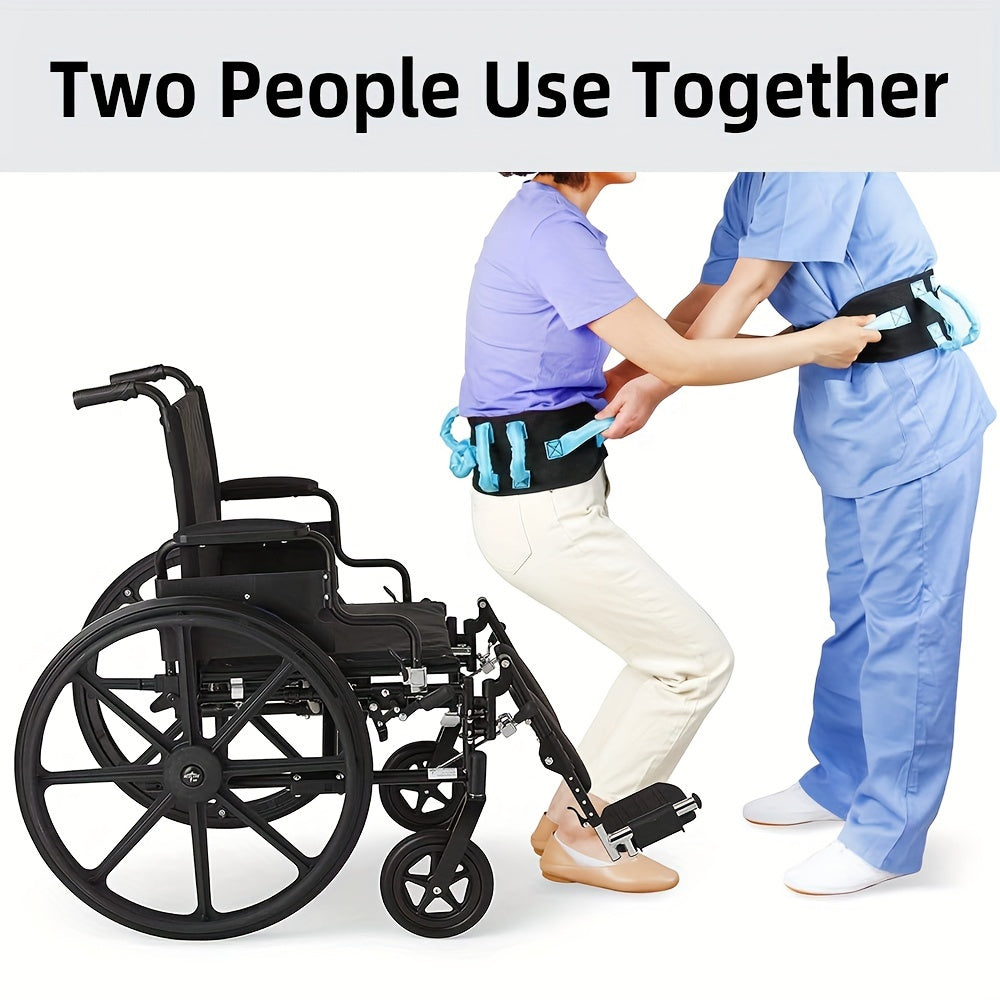 OSK Adjustable Transfer and Walking Gait Belt with 7 Handles for Patient Care - Secure & Comfortable Support, Black & Blue Design, Fits Waist Circumference 31"-51