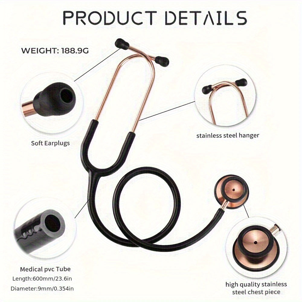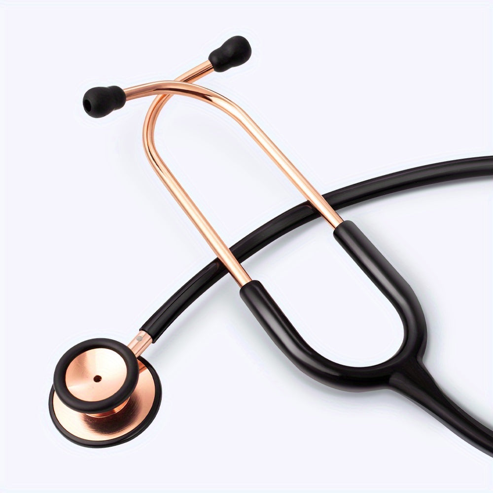 XceeFit Professional Black Stethoscope with Gold-Plated Zinc-Nickel Alloy Chest Piece, Single-Sided TVC Tube for Clear Heart & Lung Sounds, Noise Reduction, Durable Aluminum Alloy & PVC Construction - 76.96cm, Includes 2 Extra Earplugs & Rubber Ring for