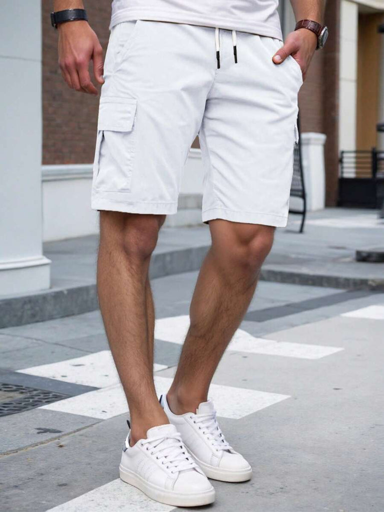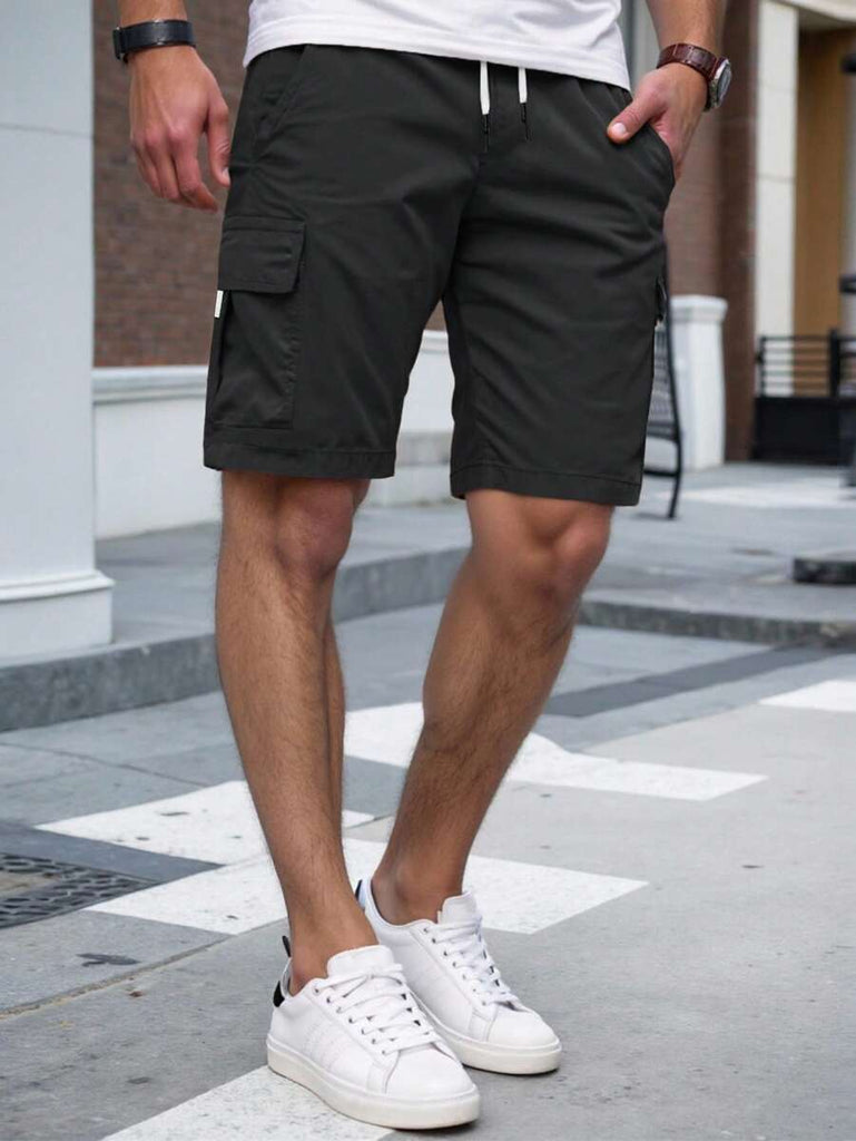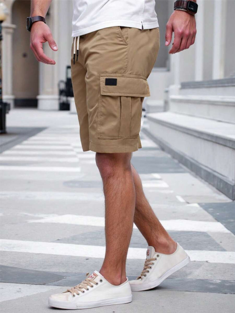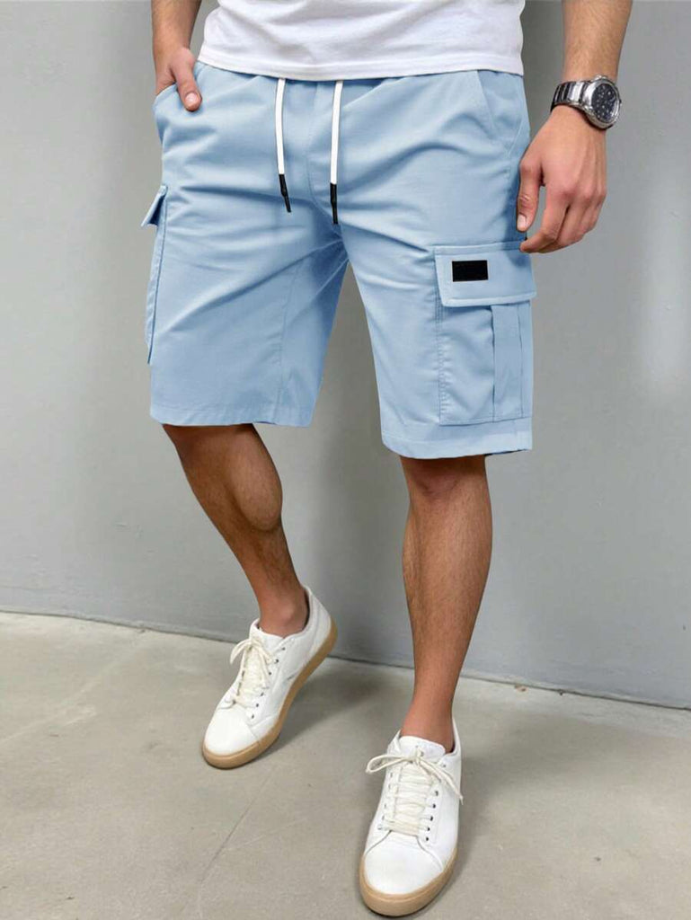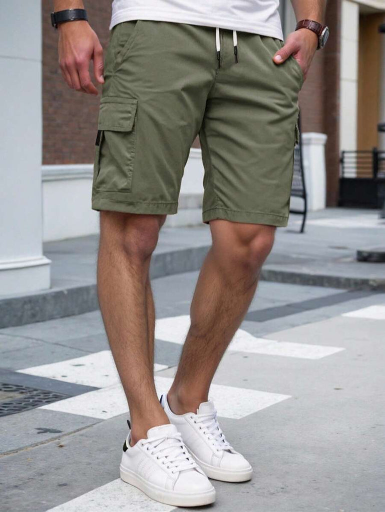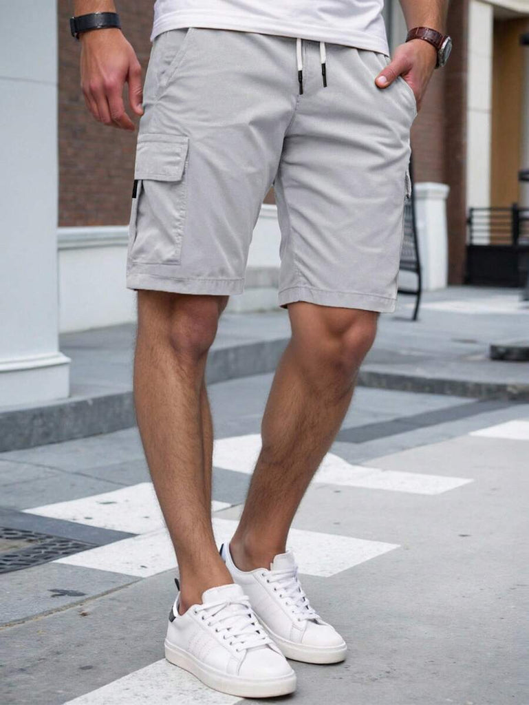 Men's Plain Casual Color Drawstring Waist Streetwear Cargo Shorts