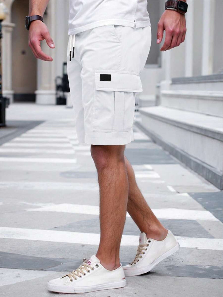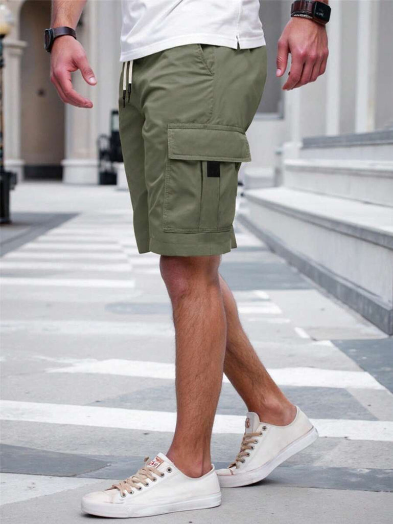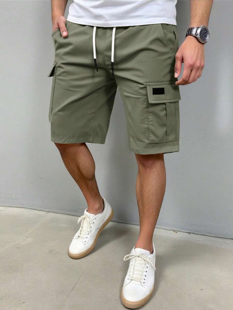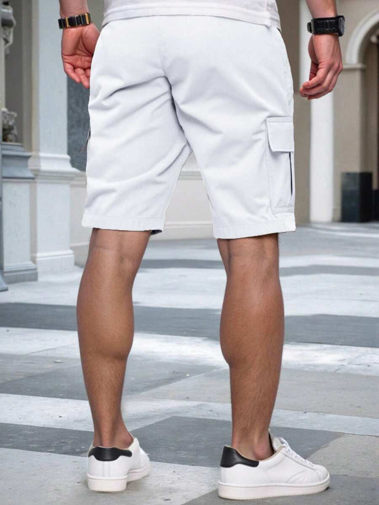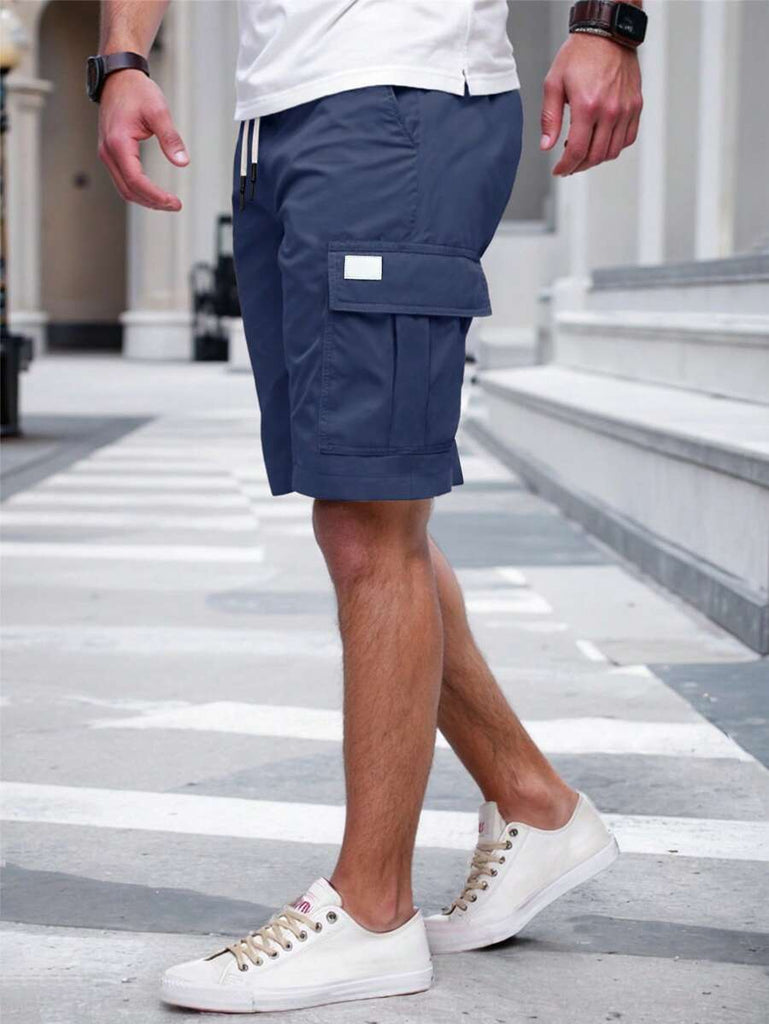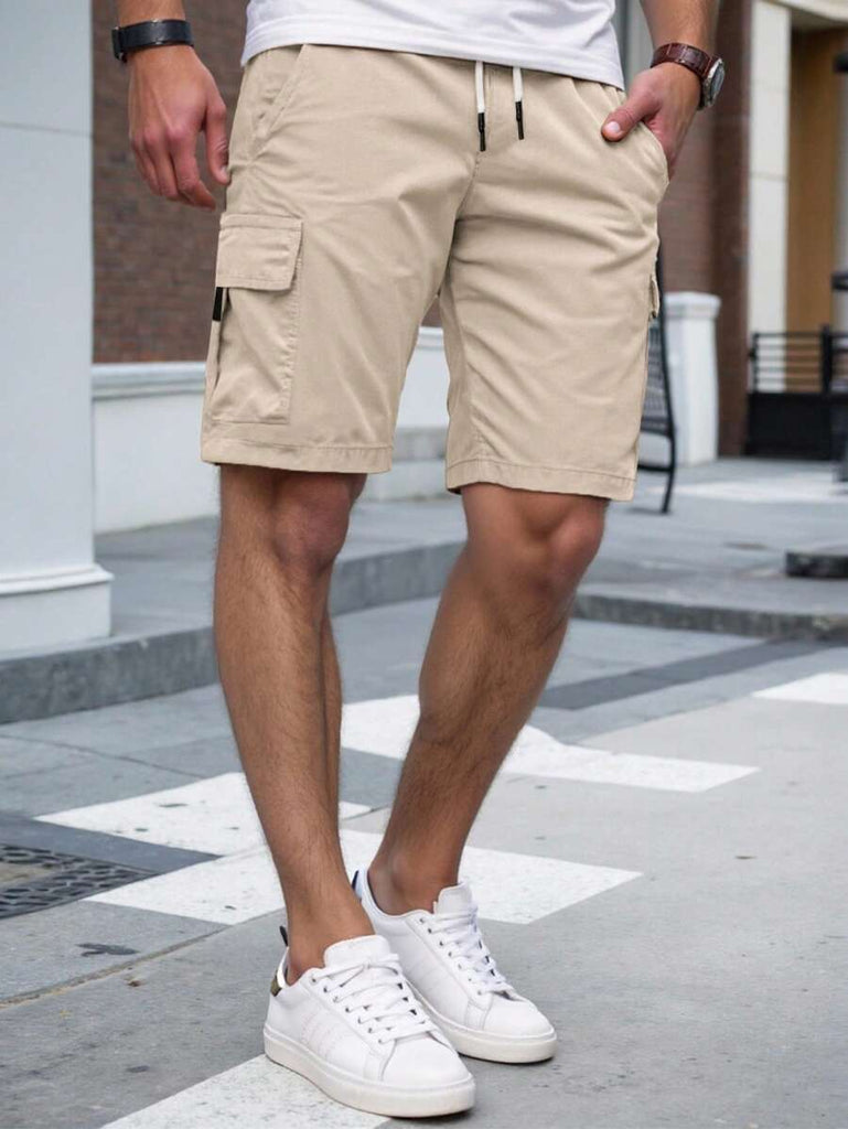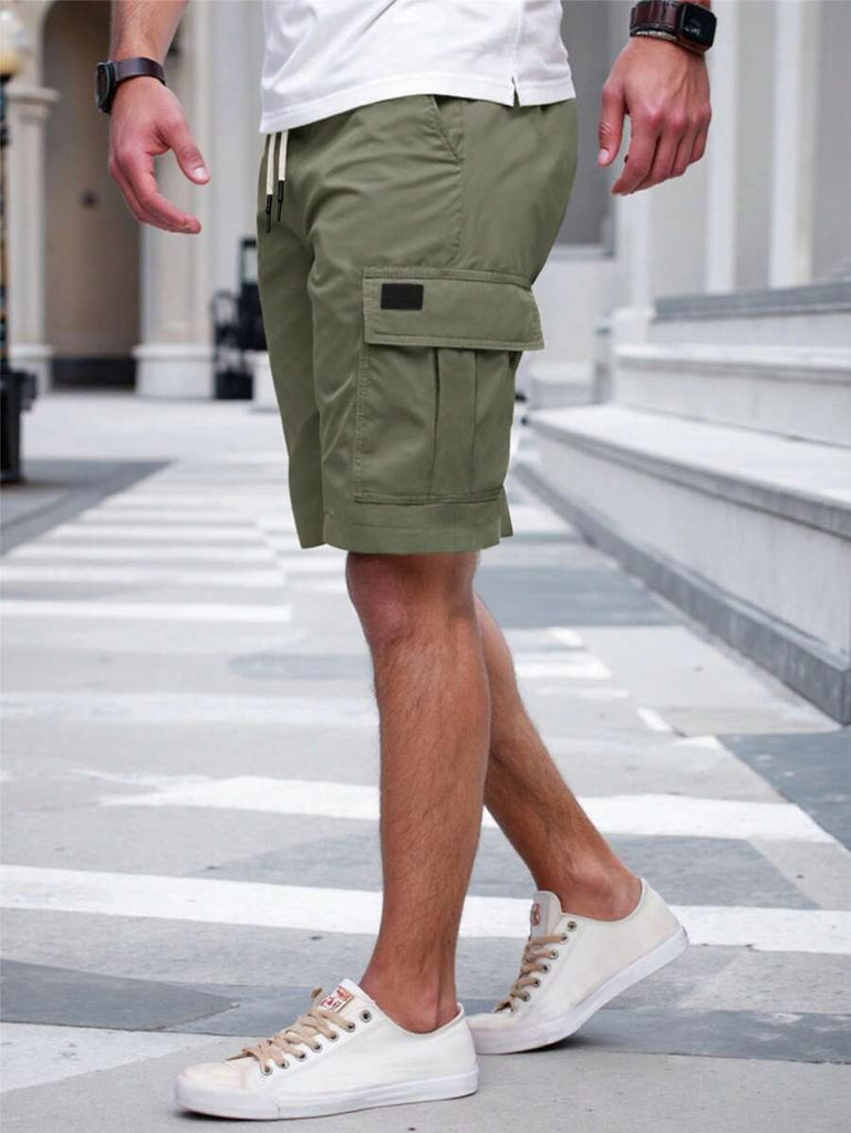 Men's Plain Casual Color Drawstring Waist Streetwear Cargo Shorts