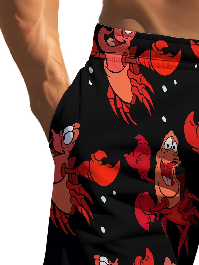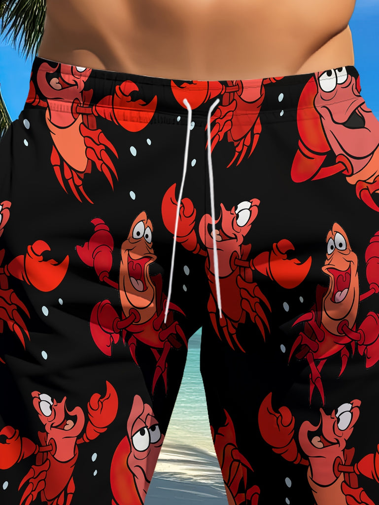 Men'S 3D Printed Red Crab Graphic Swim Trunks - Adjustable Drawstring, Quick-Dry Polyester, Casual Beach Shorts for Summer Vacation, Vacation Swimwear | Playful Graphic Shorts | Quickdry Fabric