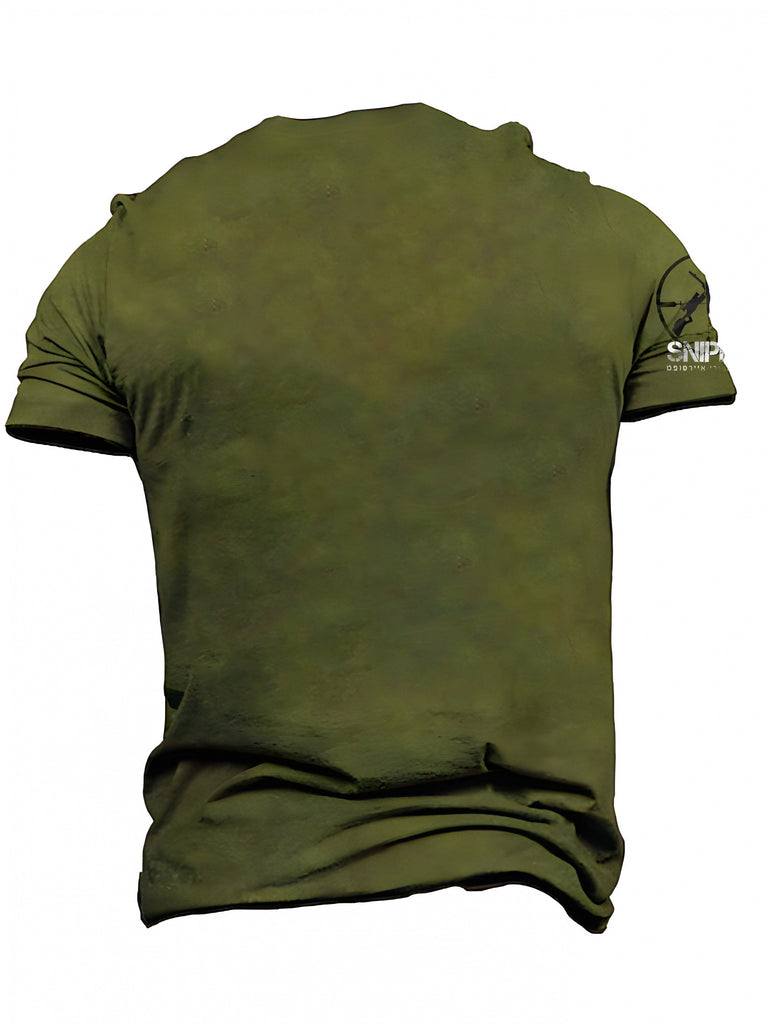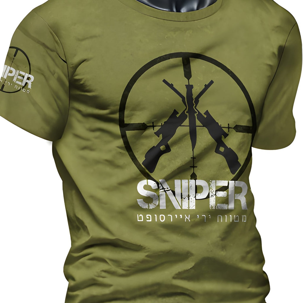 Men's Olive Green Sniper Graphic 3D Print T-Shirt - Military-Inspired Casual Short Sleeve Tee with Crosshair & Rifle Design, Regular Fit, Machine Washable, Gun T Shirt, Everyday Comfort, Durable Fabric