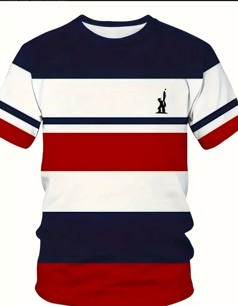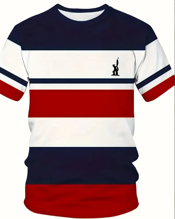 Men's Oversized Streetwear T-Shirt - 3D Digital Print Striped Design, Soft Breathable Fabric, Relaxed Fit Round Neck Short Sleeve Tee for Summer Casual & Outdoor Wear, PLUS SIZE