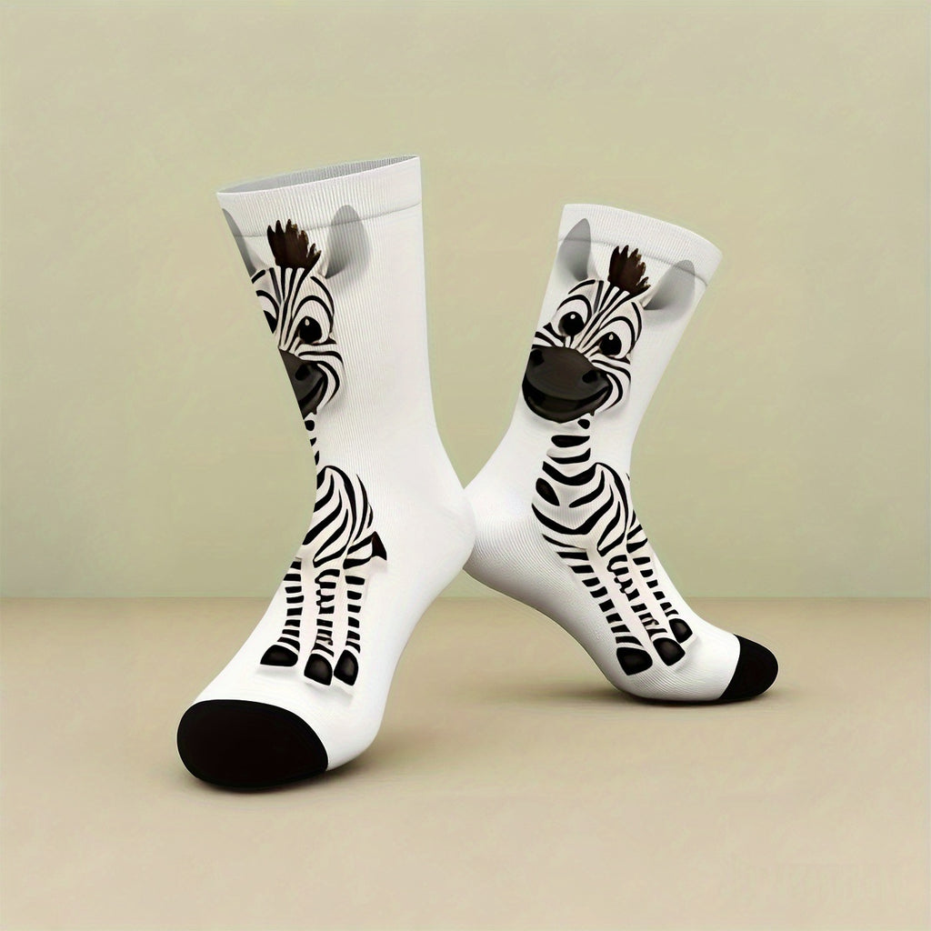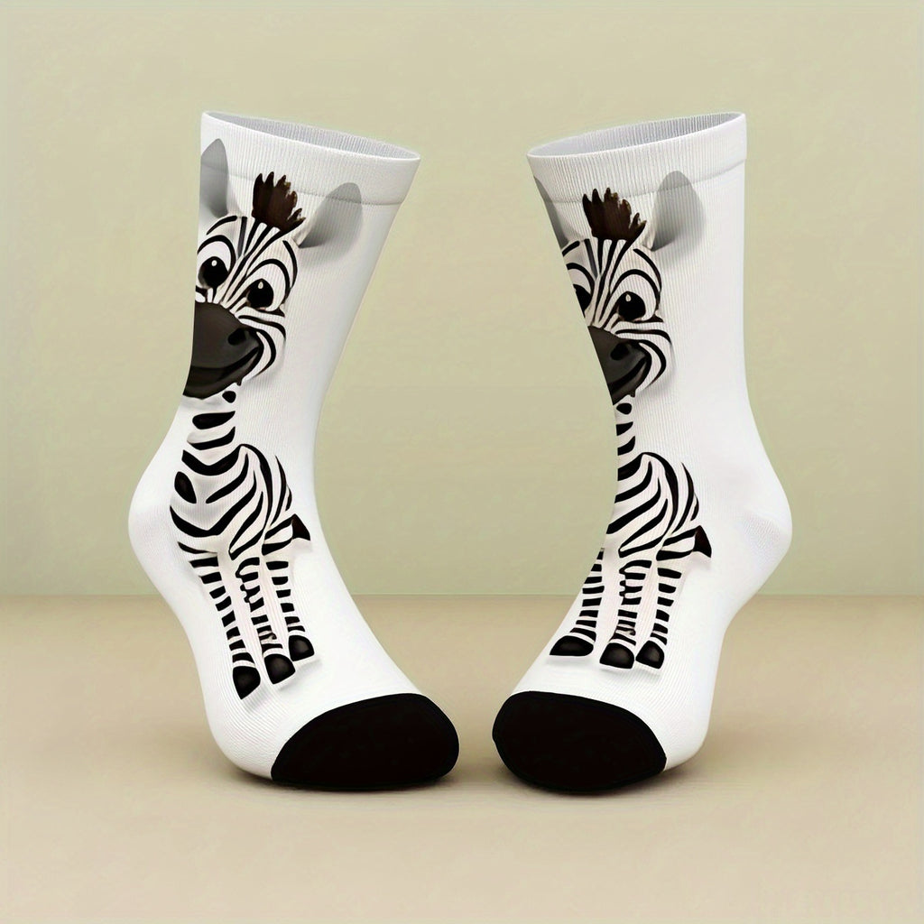 1 Pair Men's & Women's 3D Printed Zebra Stripe Face & Ears Novelty Socks