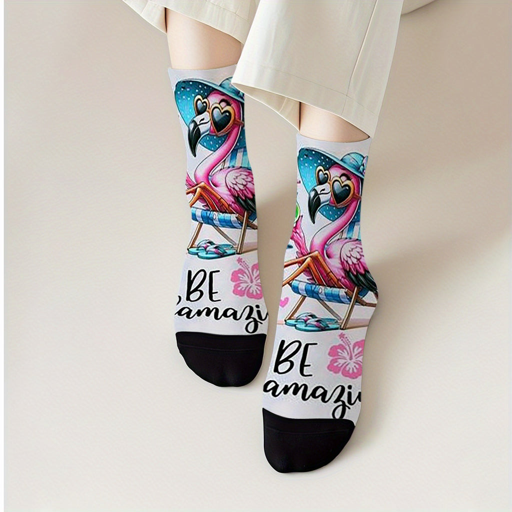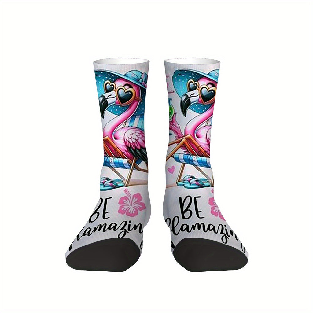 1 Pair Novelty Flamingo Socks - Tropical Hawaii Beach Design with Pink Flamingo