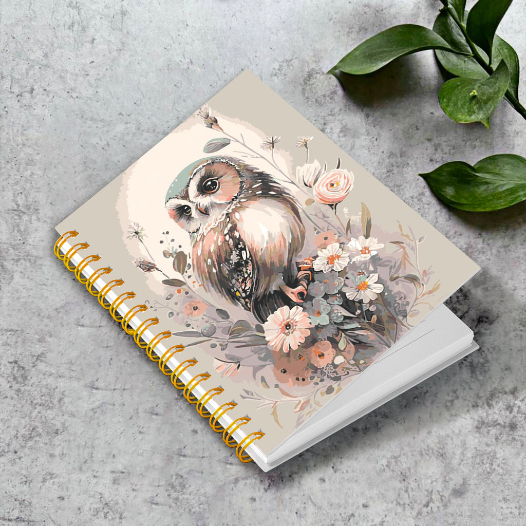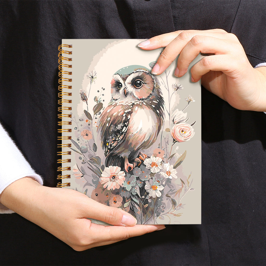1pc Elegant Owl and Floral Design Notebook - 50 Pages