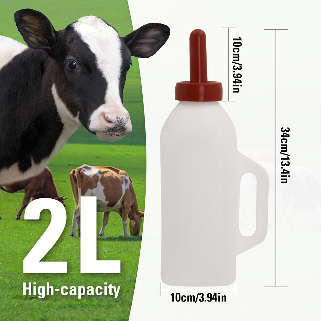 [2L Calf Milk Bottle] 2L Large Capacity Calf Milk Bottle with Nipple | Durable Plastic Feeding Bottle for Calves, Home Pet Feeding and Farm Use, Pet Feeding Essentials | Playful Animal Design