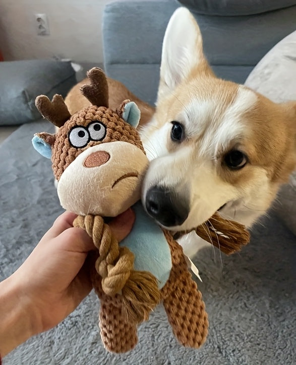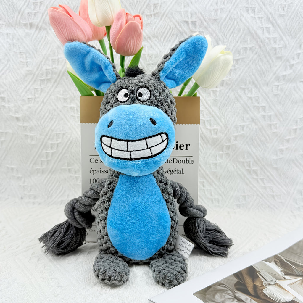 1pc Squeaky Dog Toy with Rope - High-Quality Interactive Tug-of-War Chew Toy for All Breeds, Bite-Resistant Pet Play Companion, Durable Polyester Cartoon Animal Design, No Battery Needed, Dog Toy, Playful Pet Accessory, Cartoonish Design, Biteresistant M