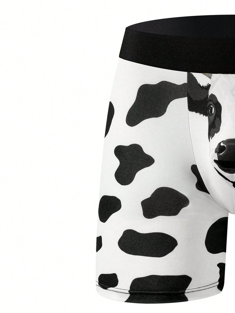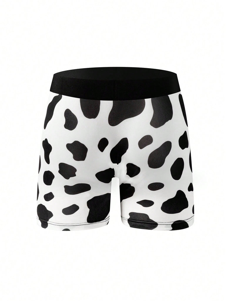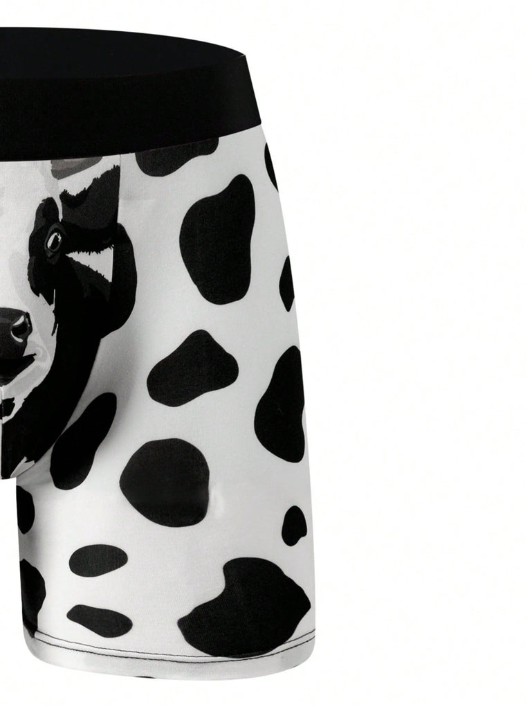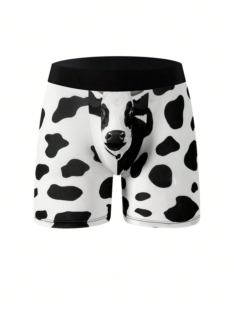 1 Pc Men's Boxer Breifs, Spotted Cow Print Pattern Design, Comfy Casual Breathable Quick Drying Panties For Home, Men's Stretchy Comfortable Underpants