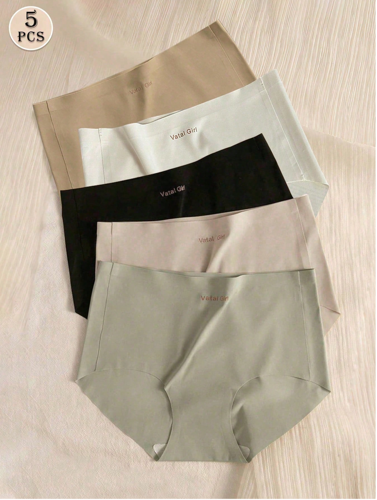 5pcs Seamless Mulberry Silk Antibacterial Gusset Underwear, Mid-Waist Sports Shorts For Women, Yoga &