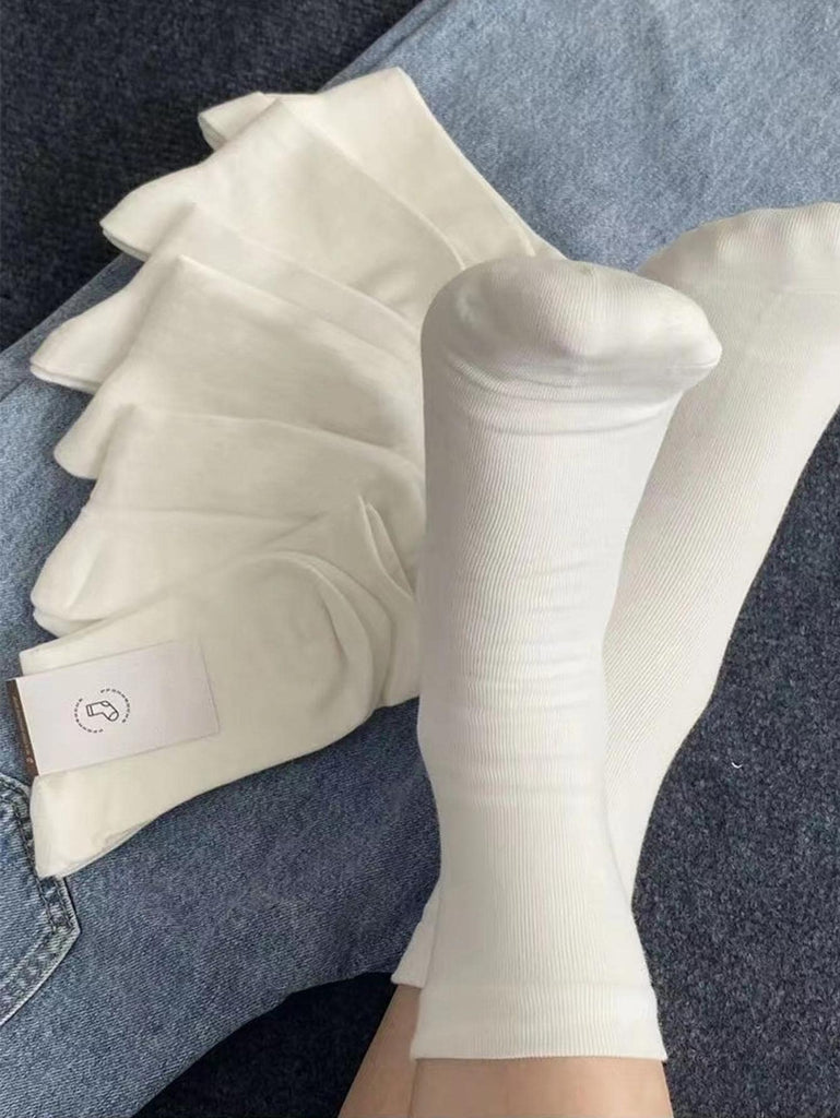 7pairs Plain Women Crew Socks