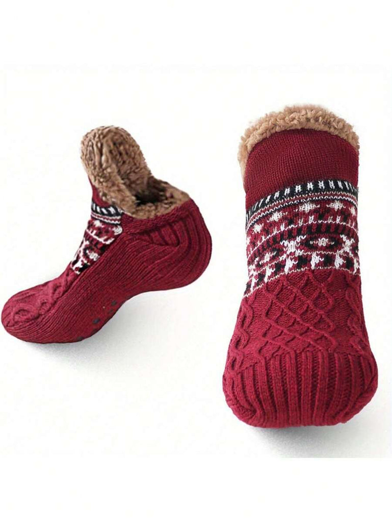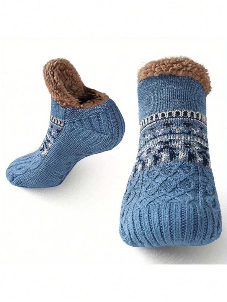 Briartw 1Pair Men's Cozy Knit Slipper Socks - Non-Slip, Warm Thermal Lined Indoor Floor Socks With Geometric Pattern, Couple Socks